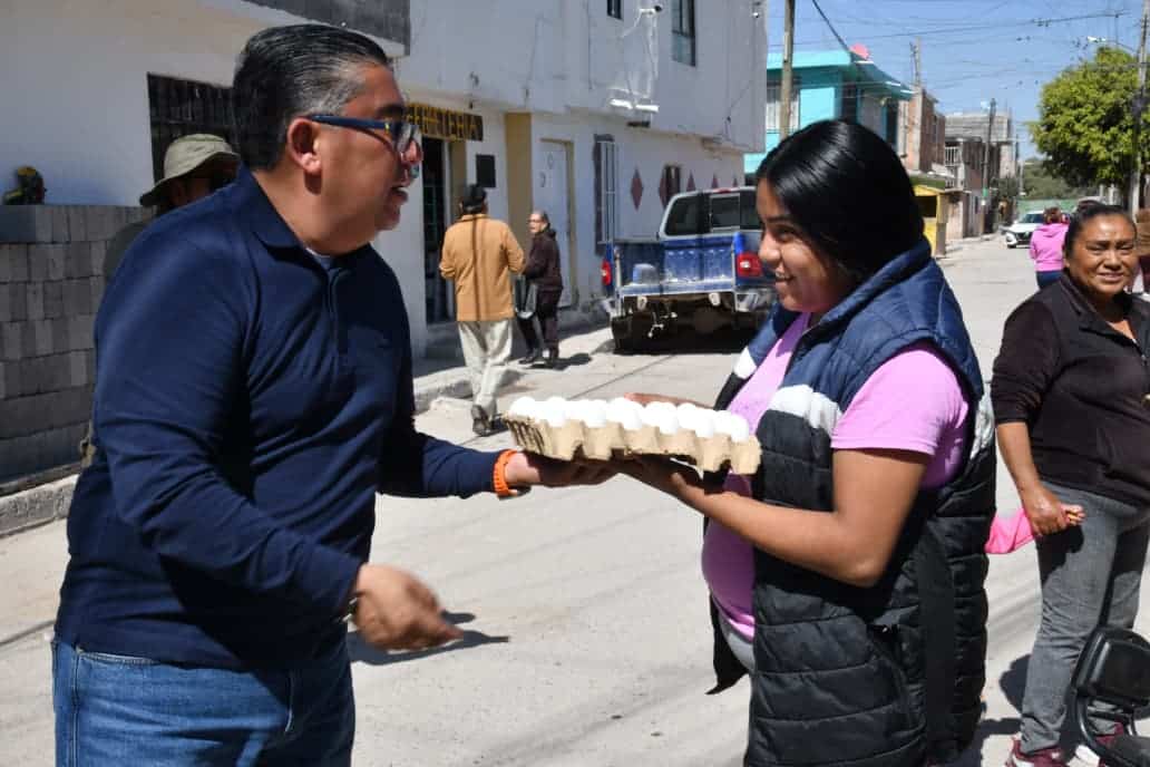 Juan Manuel Navarro Muñiz, Alcalde de Soledad de Graciano Sánchez, continuó este viernes con la entrega del programa alimentario emergente mediante la distribución de huevo como producto básico de alto valor nutricional, llevando este apoyo personalmente a los hogares de las colonias Nueve de Mayo, Primero de Mayo y Del Bosque, con una dinámica de cercanía con las familias y atención directa en territorio.