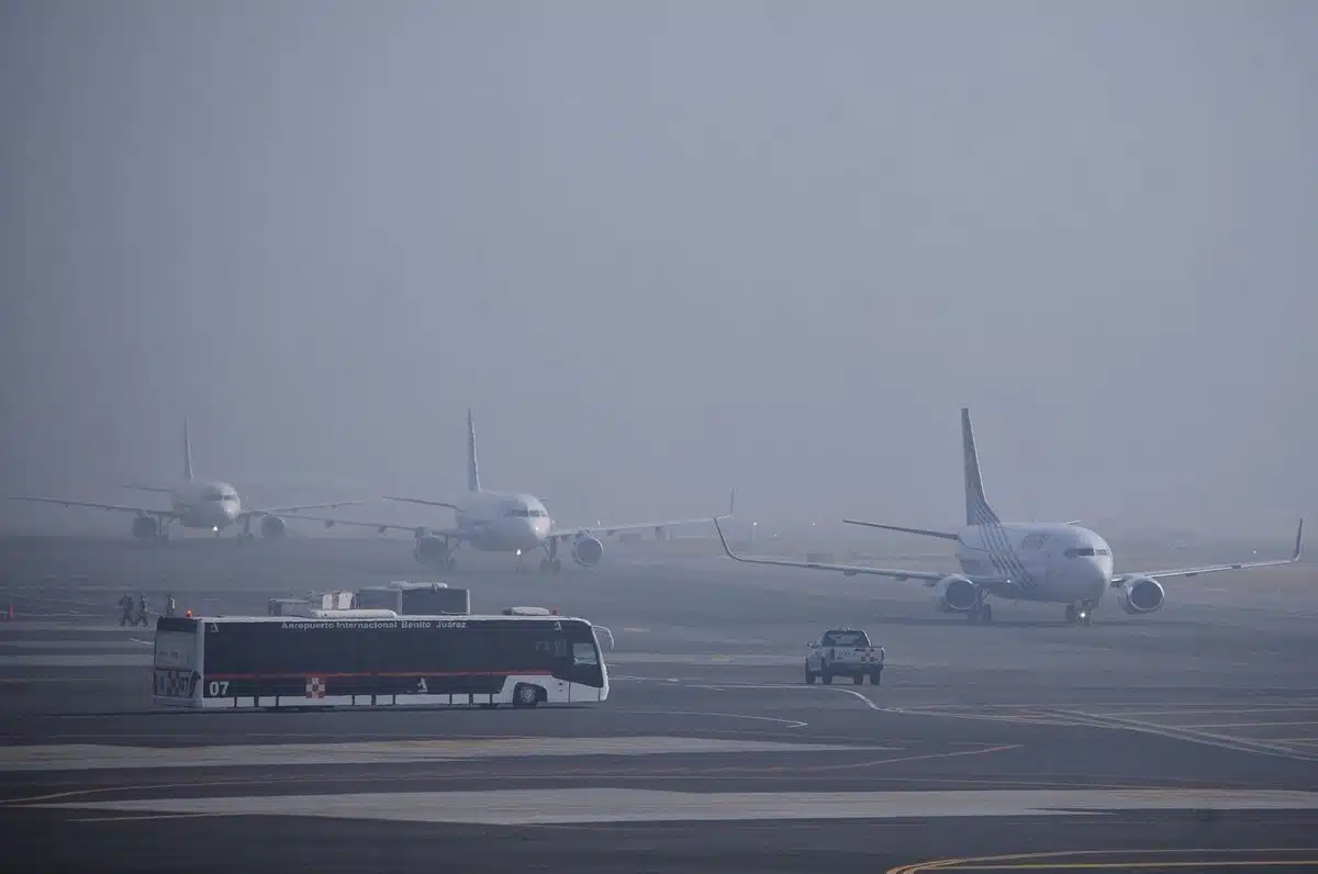 La presencia de un banco de niebla afectó esta mañana las operaciones del Aeropuerto Internacional de la Ciudad de México (AICM), provocando retrasos y cancelaciones en vuelos de llegada y salida.