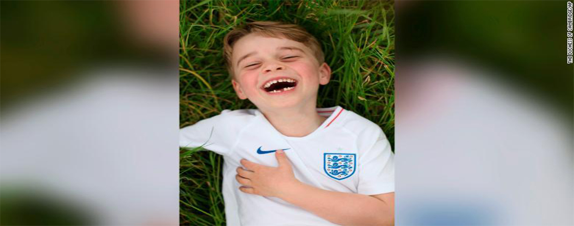 El príncipe Jorge posa para una foto tomada por su madre y difundida por el Palacio de Kensington para celebrar su sexto cumpleaños.En la primera toma, se puede ver al joven príncipe vistiendo una camiseta de fútbol de Inglaterra mientras yace juguetonamente en el jardín de su casa de Londres, en el Palacio de Kensington. Una segunda fotografía muestra al pequeño Jorge con la misma camisa, sonriendo alegremente a la cámara.