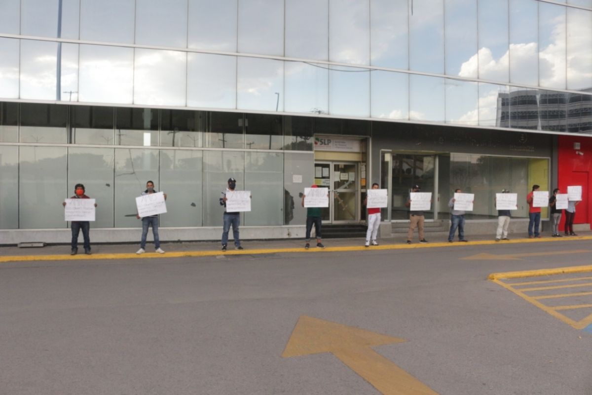 San Luis Potosí, S.L.P. a 20 de mayo del 2020.- Un grupo de trabajadores desempleados de la zona fabril de esta ciudad,  se manifestaron en las afueras de la Secretaría del Trabajo y Previsión Social, STPS, para pedir empleo y apoyo alimentario, dado que por efectos de la contingencia sanitaria se quedaron sin fuente de ingresos para llevar los alimentos al hogar.