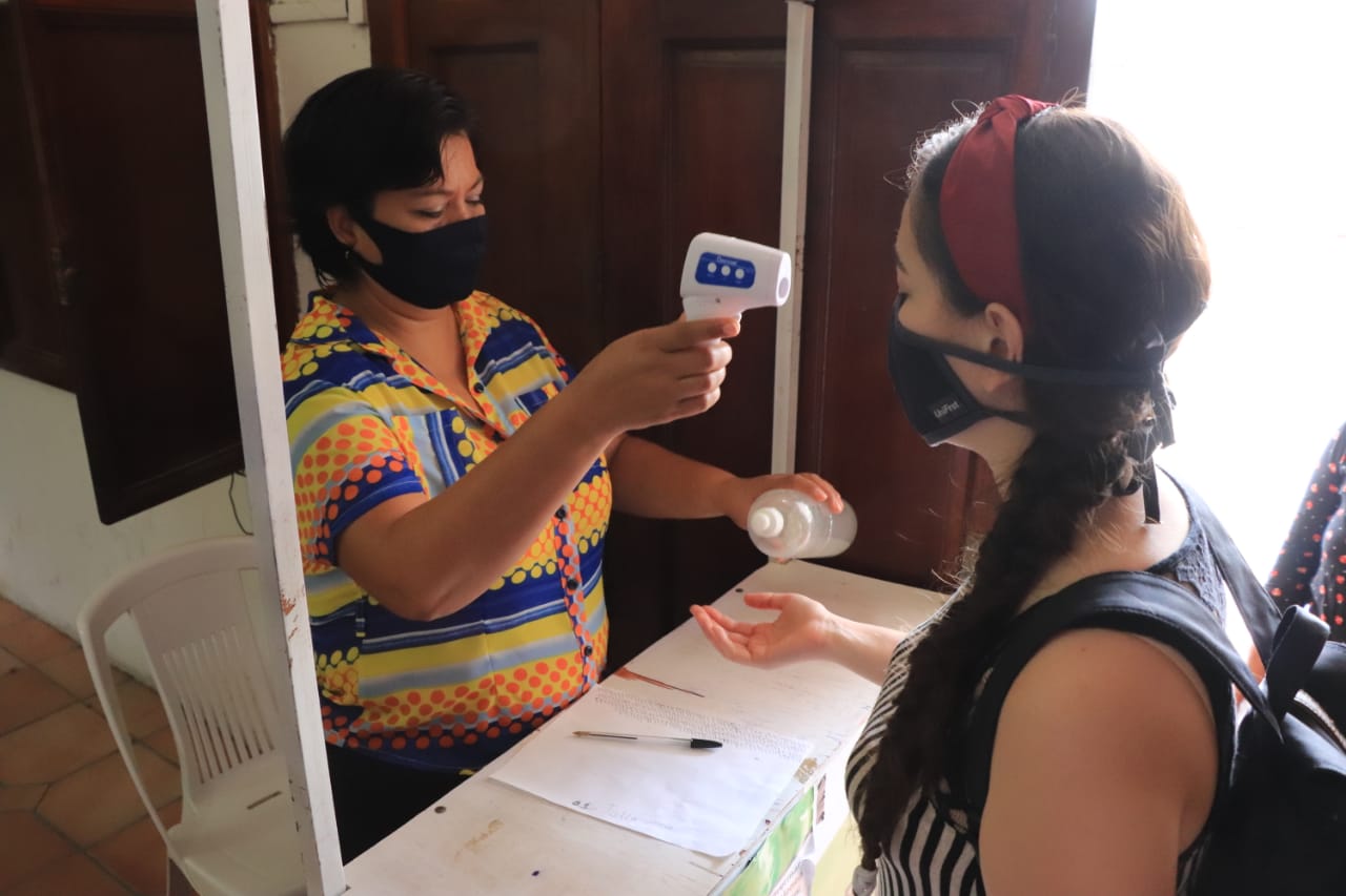 Parte del protocolo sanitario aplicado, se encuentra la toma de temperatura, uso de cubrebocas, aplicación de gel antibacterial y la implementación de la sana distancia entre los usuarios, con la finalidad de evitar riesgos de contagio de coronavirus, COVID-19.