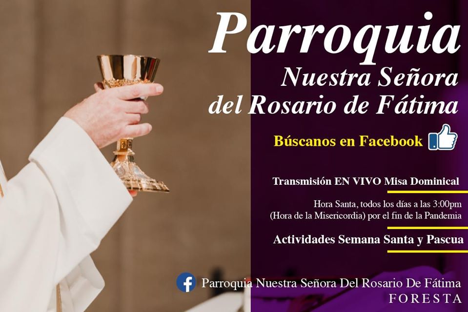 Debido a esto, el párroco de la iglesia Nuestra Señora del Rosario de Fátima invita a todos los fieles a unirse a las transmisiones en vivo de la Hora Santa que realizan en su cuenta de facebook, todos los días en punto de las 3:00 pm.