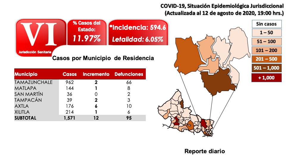 A cuatro meses de la llegada de la pandemia a la entidad, suman 13, 127 casos positivos y 833 fallecidos a causa de la enfermedad. El porcentaje de letalidad se ubica en 6.34 por ciento.
