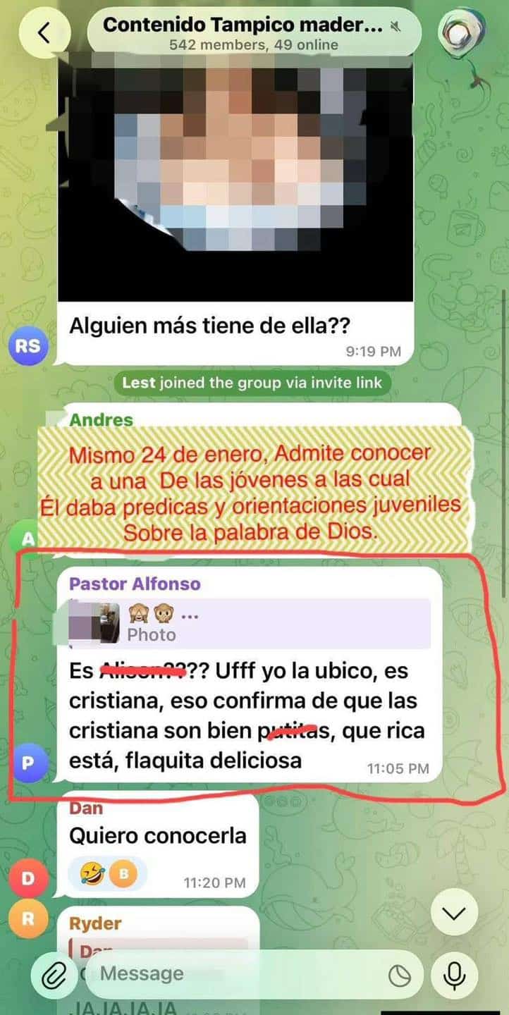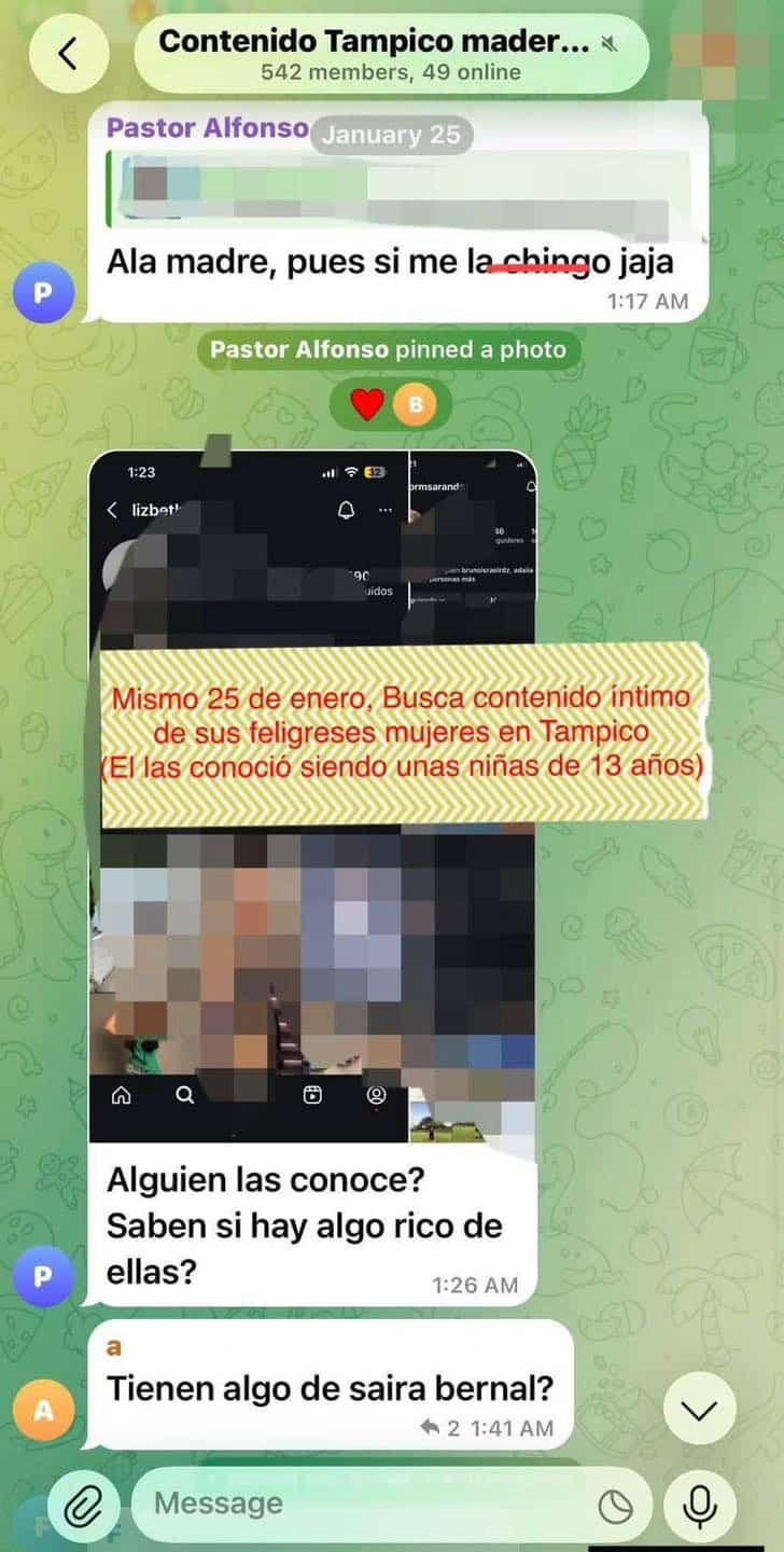 Usuarios de redes sociales exhibieron a un pastor cristiano de Tamazunchale, el líder religioso fue sorprendido participando en grupos de mensajería dedicados a la distribución de material íntimo sin consentimiento, presuntamente, perteneciente a las jovencitas de la región. Los señalamientos identifican a Alfonso N, quien sería pastor en una iglesia local, como uno de los integrantes activos en diversas comunidades de la plataforma Telegram donde se comparte contenido sexual de mujeres.