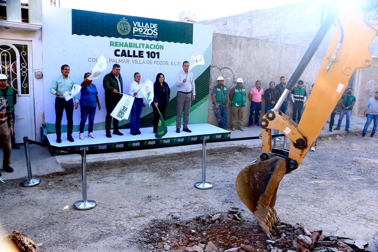 Con el objetivo de consolidar acciones inmediatas de infraestructura ahora que Villa de Pozos se convirtió en municipio, la Presidenta Concejal, Paty Aradillas, dio el banderazo de arranque a la rehabilitación integral de la calle 101 en la colonia El Palmar, para beneficio directo de más de 4 mil personas.