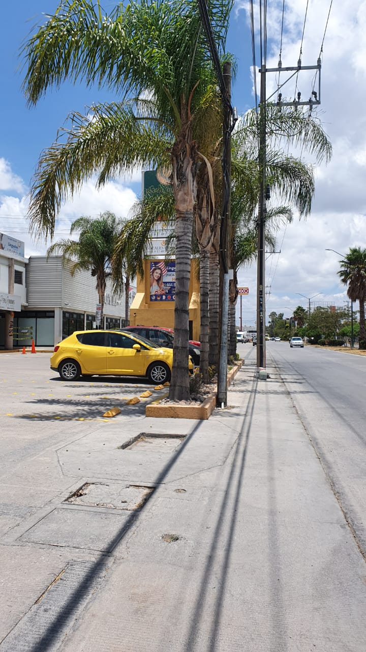 A través de redes sociales, usuarios hicieron la denuncia social de que la Plaza El Quijote se adueñó del área de la banqueta para colocar unas palmeras y rebajar a ras de suelo la entrada al estacionamiento.