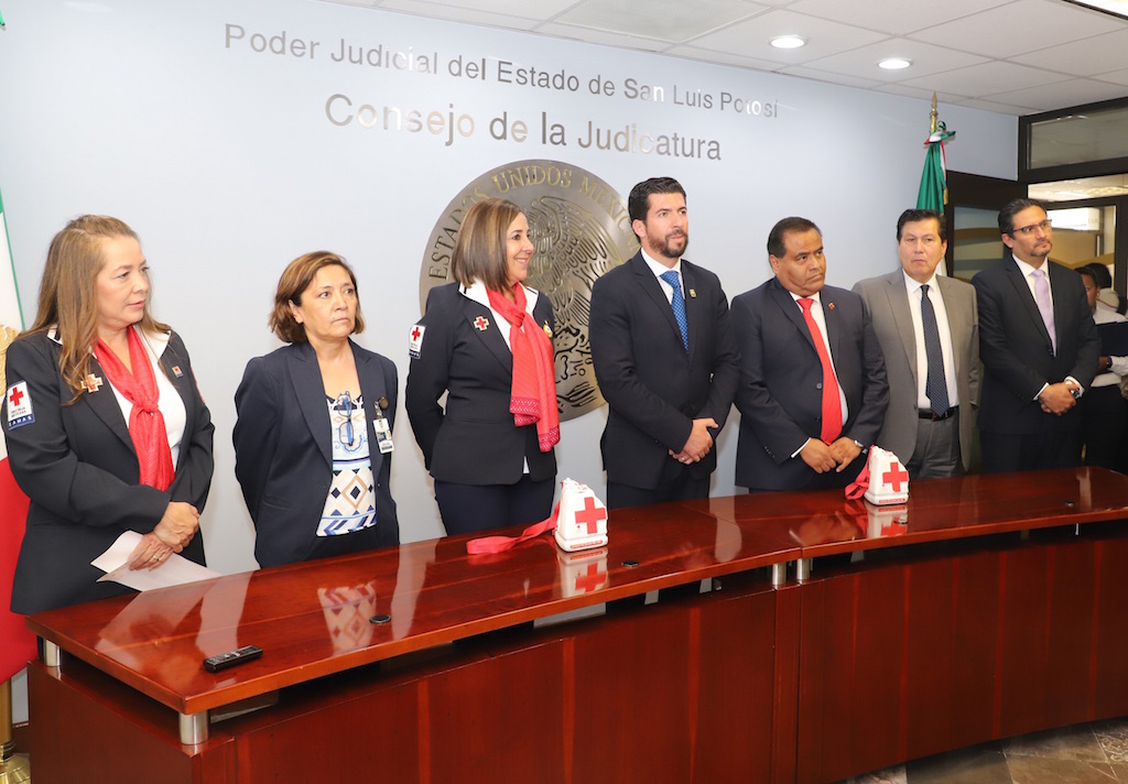 La Delegación Estatal de la Cruz Roja Mexicana recibió del Poder Judicial, los donativos institucional y personales de magistradas y magistrados del Supremo Tribunal de Justicia, integrantes del Consejo de la Judicatura, así como juezas y jueces.