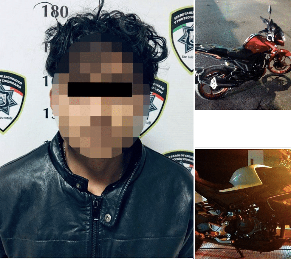 El primer aseguramiento ocurrió en avenida Salvador Nava y Coronel Romero, donde los oficiales detectaron a un joven de 21 años que conducía una motocicleta urbana que contaba con reporte de robo con violencia. De inmediato fue detenido y la unidad asegurada.
