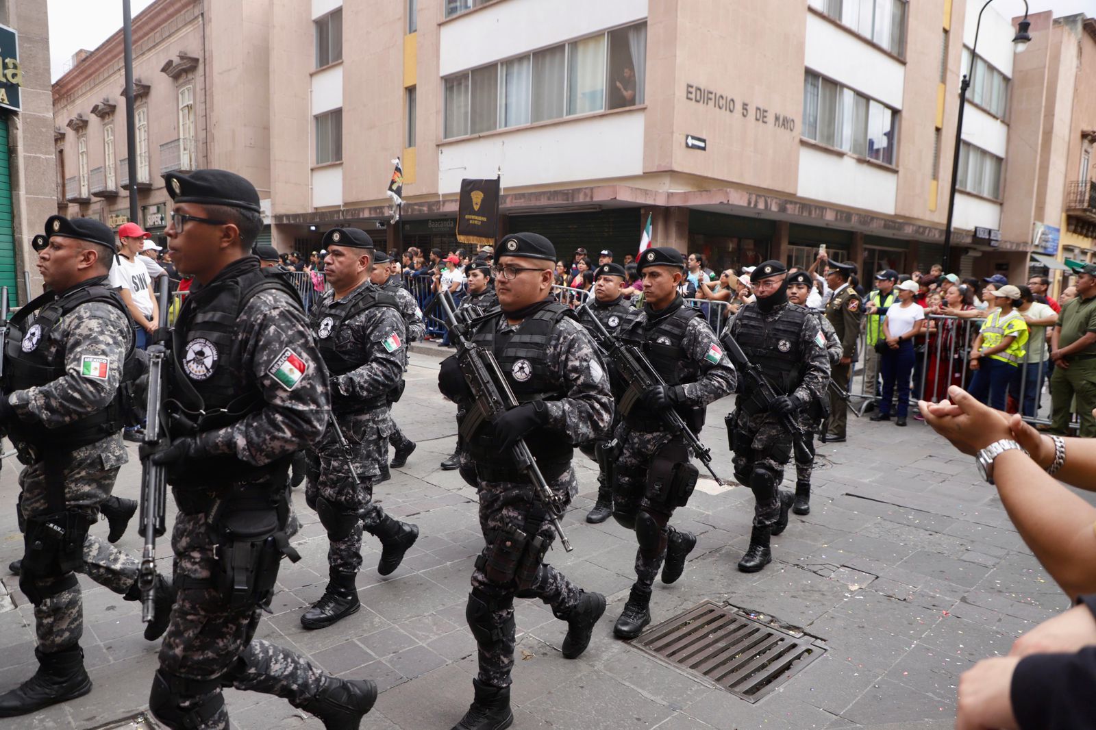 La Policía de la Capital participó con orgullo y compromiso en el Desfile Cívico Militar conmemorativo del 215 aniversario de la Independencia de México, reafirmando su lealtad a la patria y su vocación de servicio a la ciudadanía. El alcalde Enrique Galindo Ceballos estuvo presente en el balcón de Palacio de Gobierno, acompañado por el gobernador del estado, para presenciar el evento.