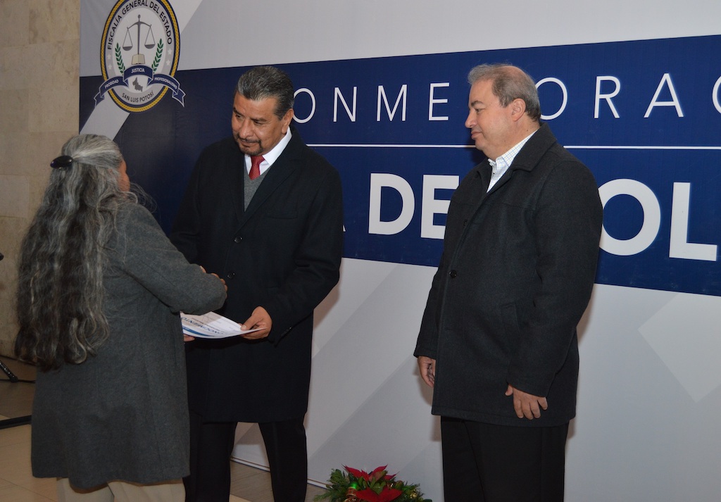 SLP. – Con la presencia del Fiscal General del Estado de San Luis Potosí, Federico Arturo Garza Herrera y el director General de Métodos de Investigación, José Guadalupe Castillo Celestino, se llevó a cabo la conmemoración del “Día del Policía” en donde se reconoció la labor de elementos operativos de las cuatro regiones de la entidad.