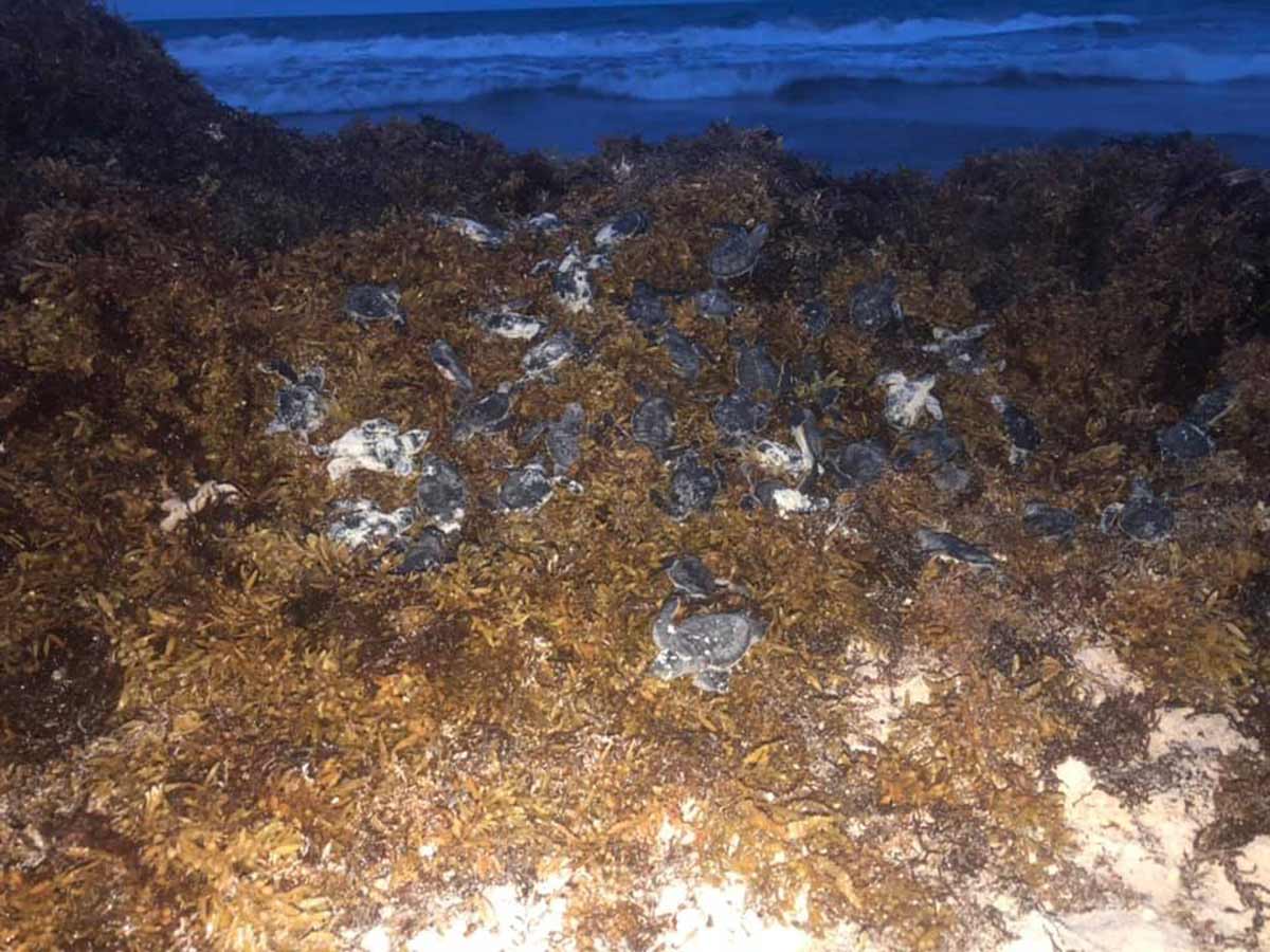 Usuarios de redes sociales denunciaron la muerte masiva de crías de tortuga en la Reserva de la Biosfera de Sian Ka’an, Quintana Roo debido a que no pudieron llegar al mar luego de eclosionar y salir de sus nidos, por la gran acumulación de sargazo que hay en las playas.