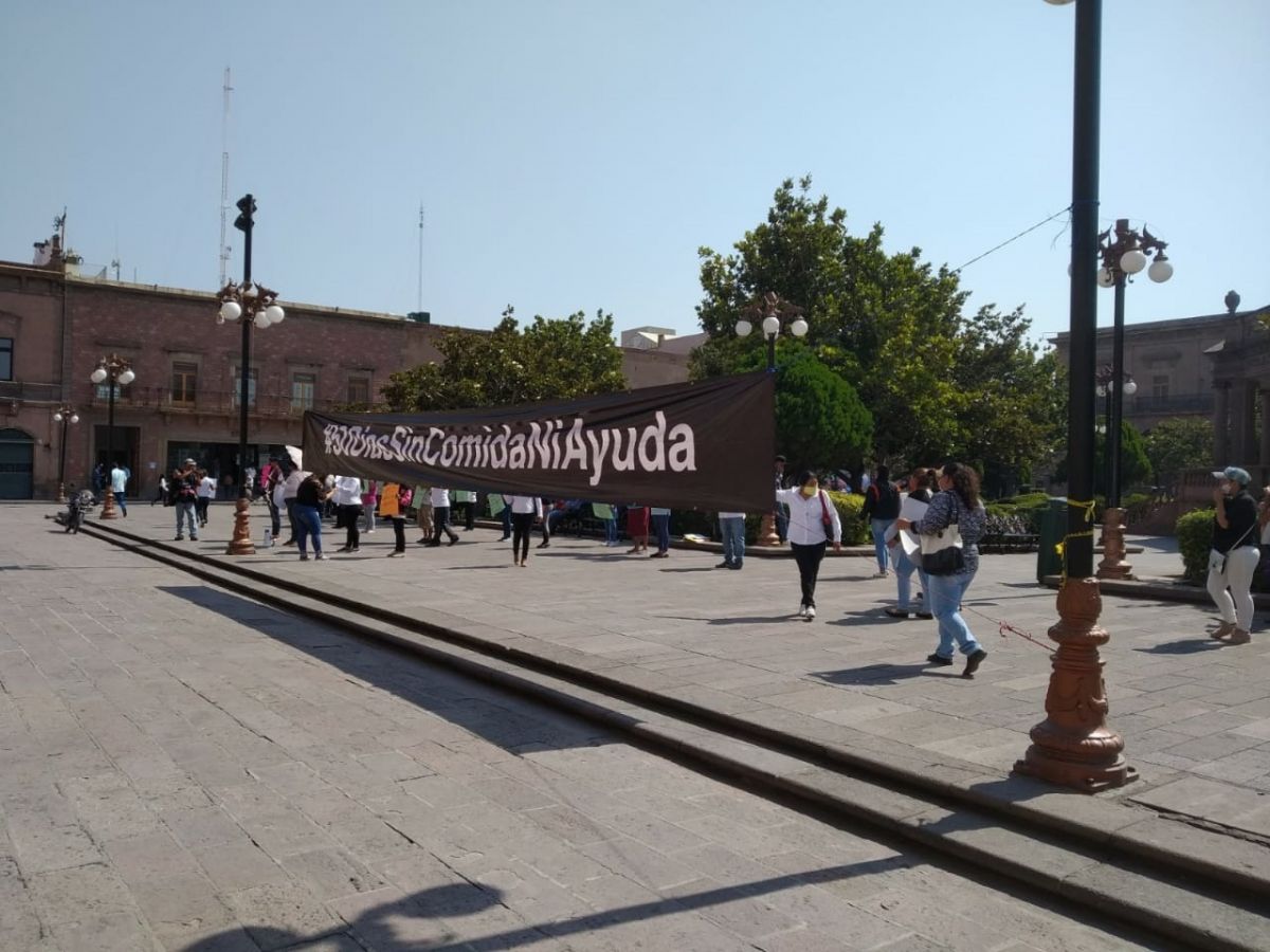 Potosinos sin comida se manifiestan en Plaza de Armas