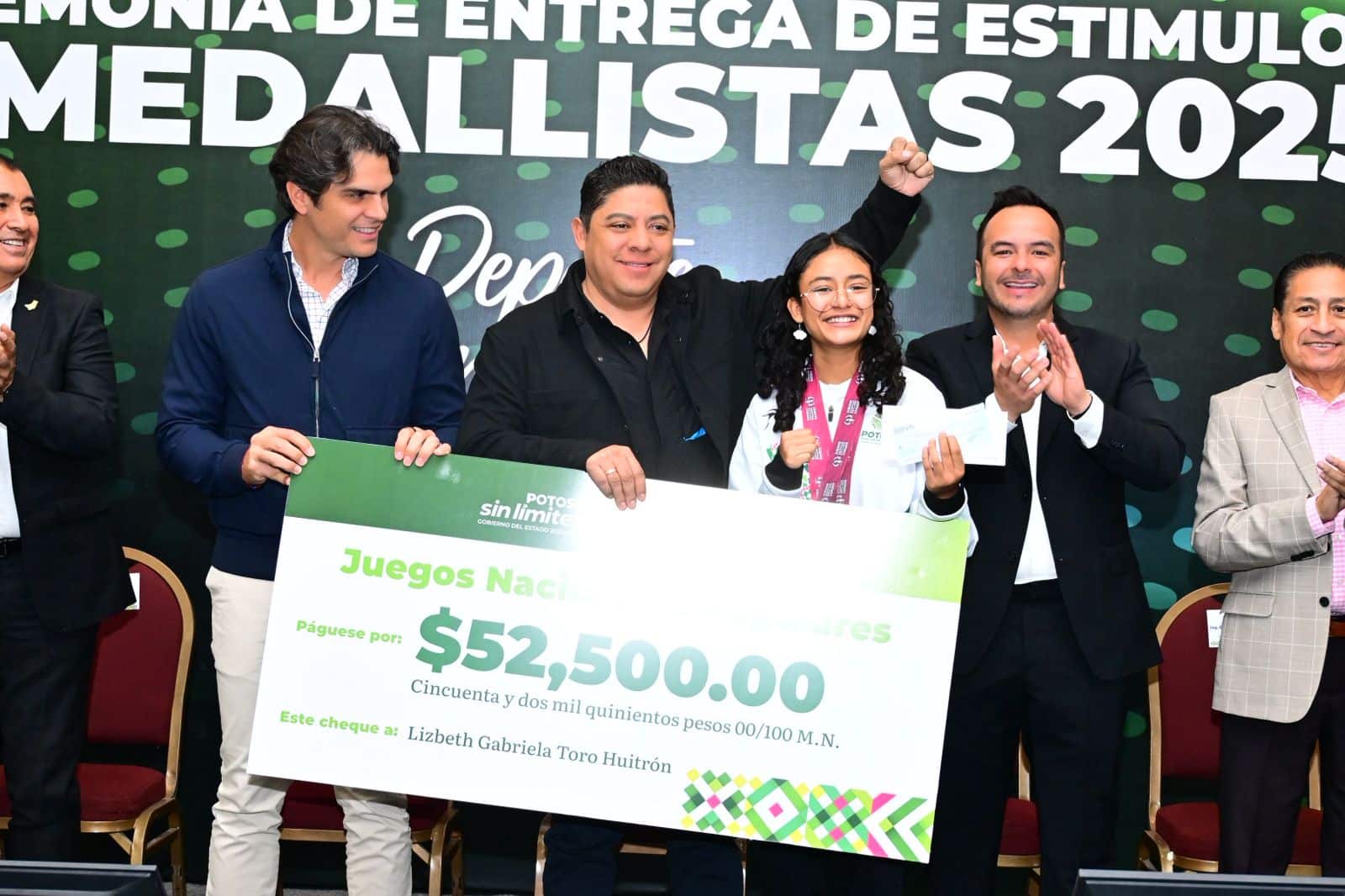 El Gobernador de San Luis Potosí Ricardo Gallardo Cardona, entregó estímulos económicos por 5 millones 160 mil pesos a 136 deportistas que obtuvieron medallas en los Nacionales y Paranacionales Conade 2025, así como en los Juegos Nacionales Populares, donde destacó que el deporte potosino vive su mejor etapa con el trabajo de las y los jóvenes y el apoyo sin límites de la administración.