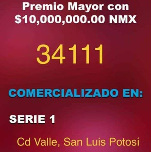 El huasteco ganador 10 millones de pesos ya que contaba con el número 34111. Los datos del ganador se manejan a discreción por motivos de seguridad.