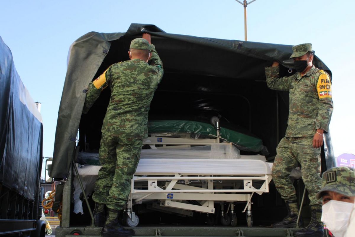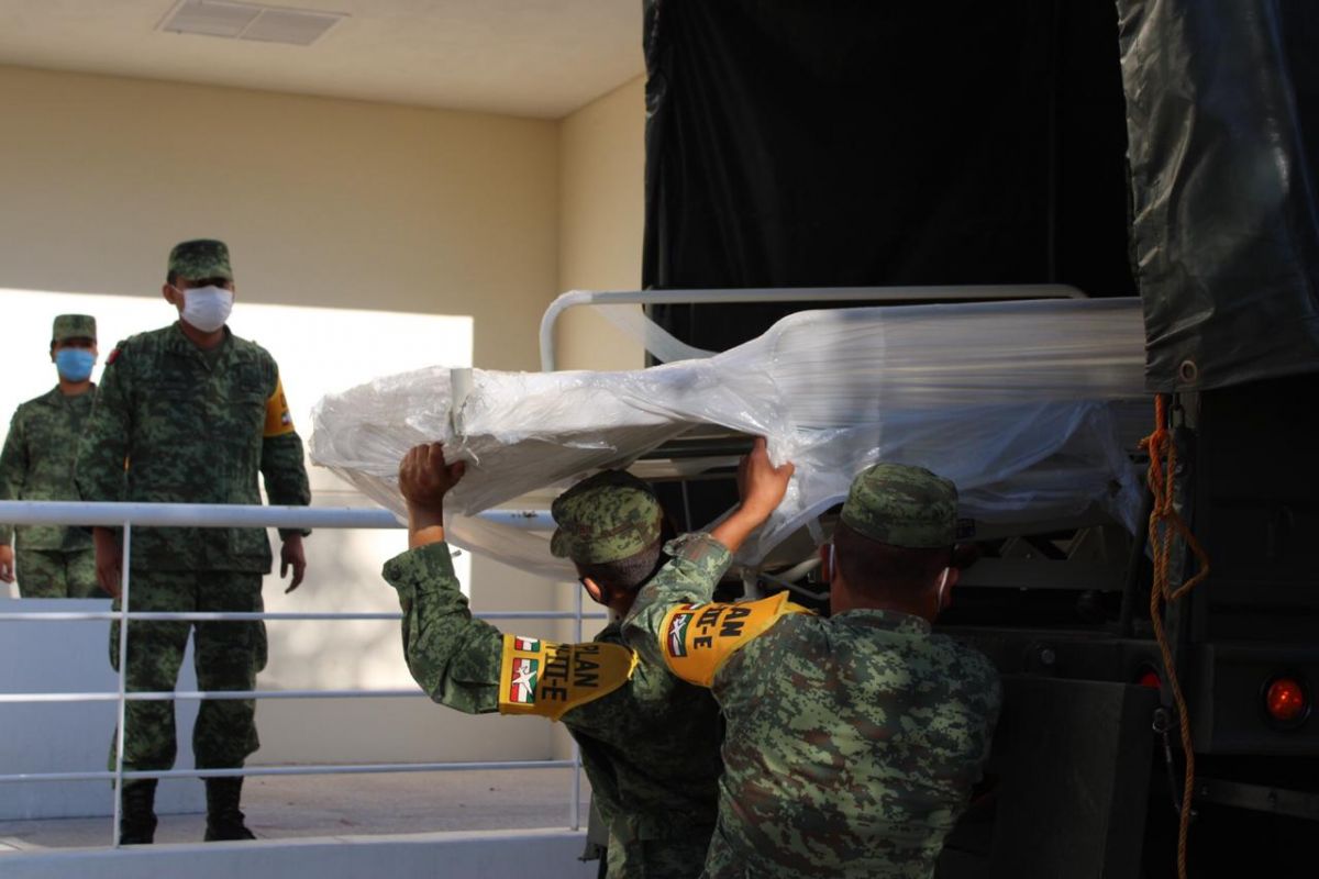 Elementos de la Secretaría de la Defensa Nacional, a través de la doceava Zona Militar, recibieron 21 camas para hospitalización para el Hospital Central Dr. Ignacio Morones Prieto. Solo quedan pendientes 29 de las 50 que proporcionará la federación.