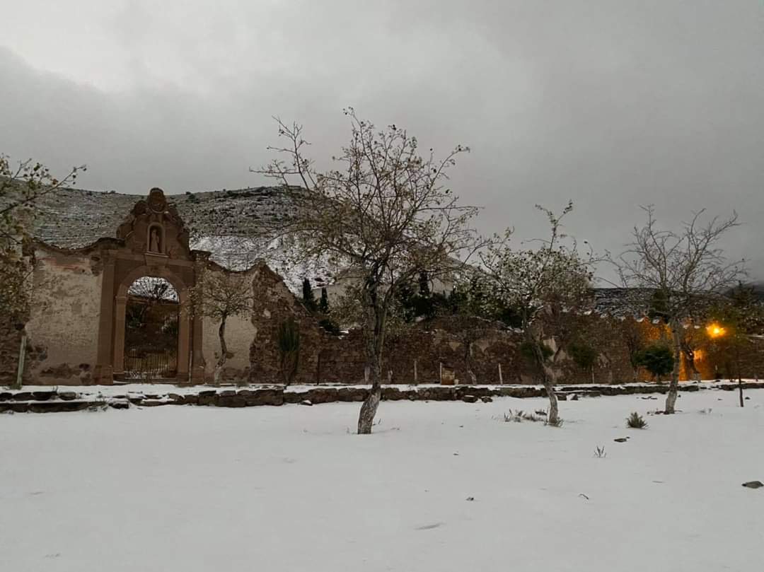 Real de Catorce, S.L.P.- El pueblo mágico de Real de Catorce se vistió de gala para despedir este año, tras registrarse la primer nevada de la temporada, fenómeno que dejo un majestuoso paisaje blanco.