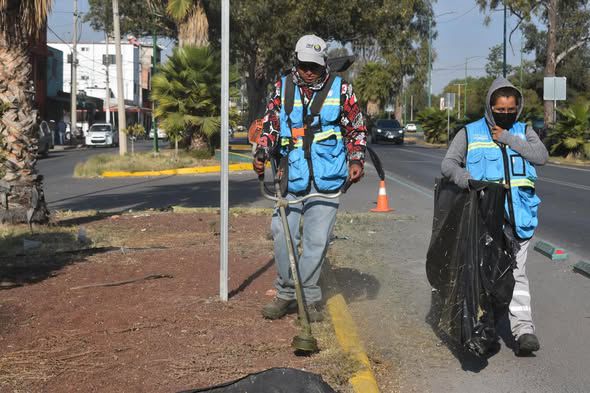 Personal de Servicios Municipales trabaja en el rescate de espacios públicos en la zona aledaña al Parque Tangamanga II y el Cementerio El Saucito