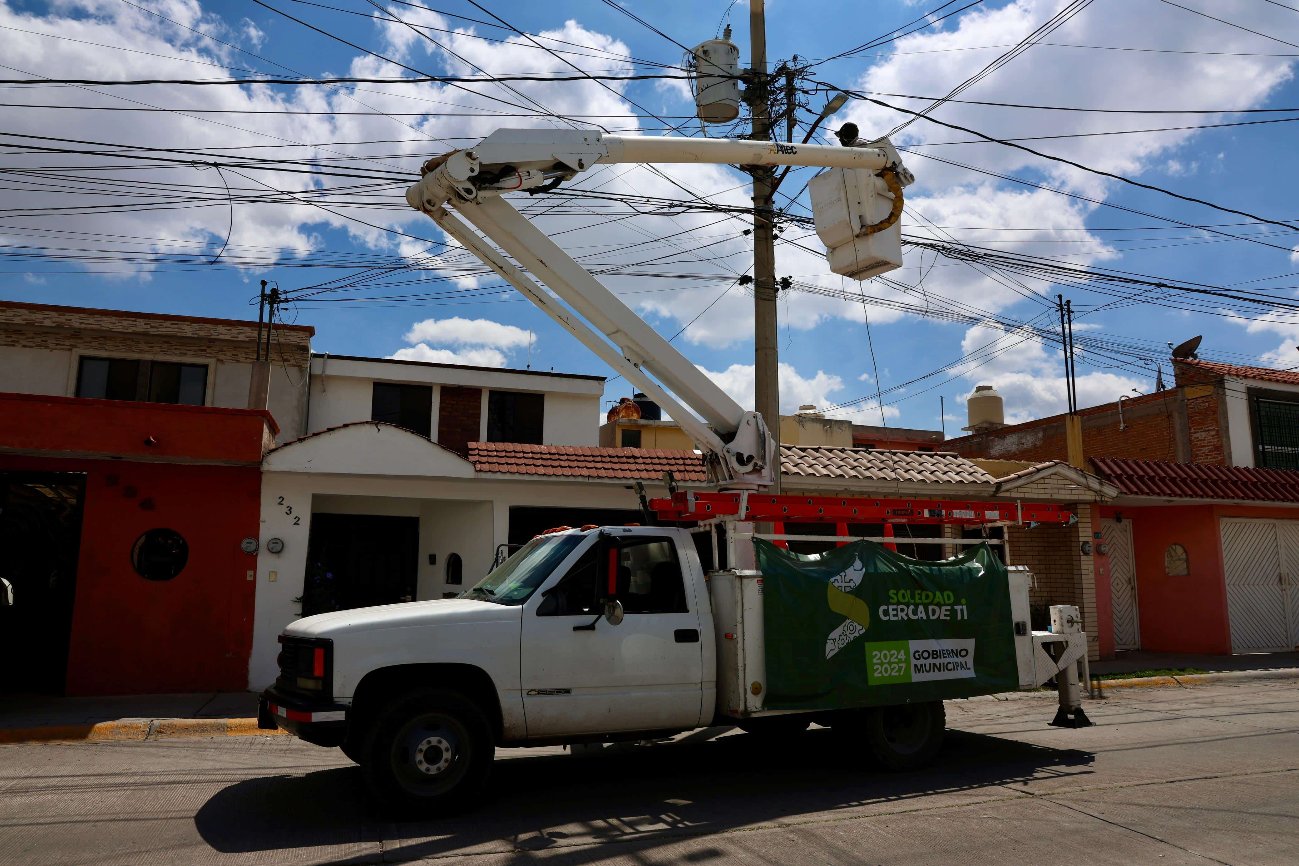 El Ayuntamiento de Soledad de Graciano Sánchez a través del área de Alumbrado Público de la Dirección de Servicios Municipales, mantiene de manera permanente el operativo para la reparación y acciones de mantenimiento de luminarias existentes en el municipio, con las que miles familias disfrutan de calles más seguras y mejor iluminadas.