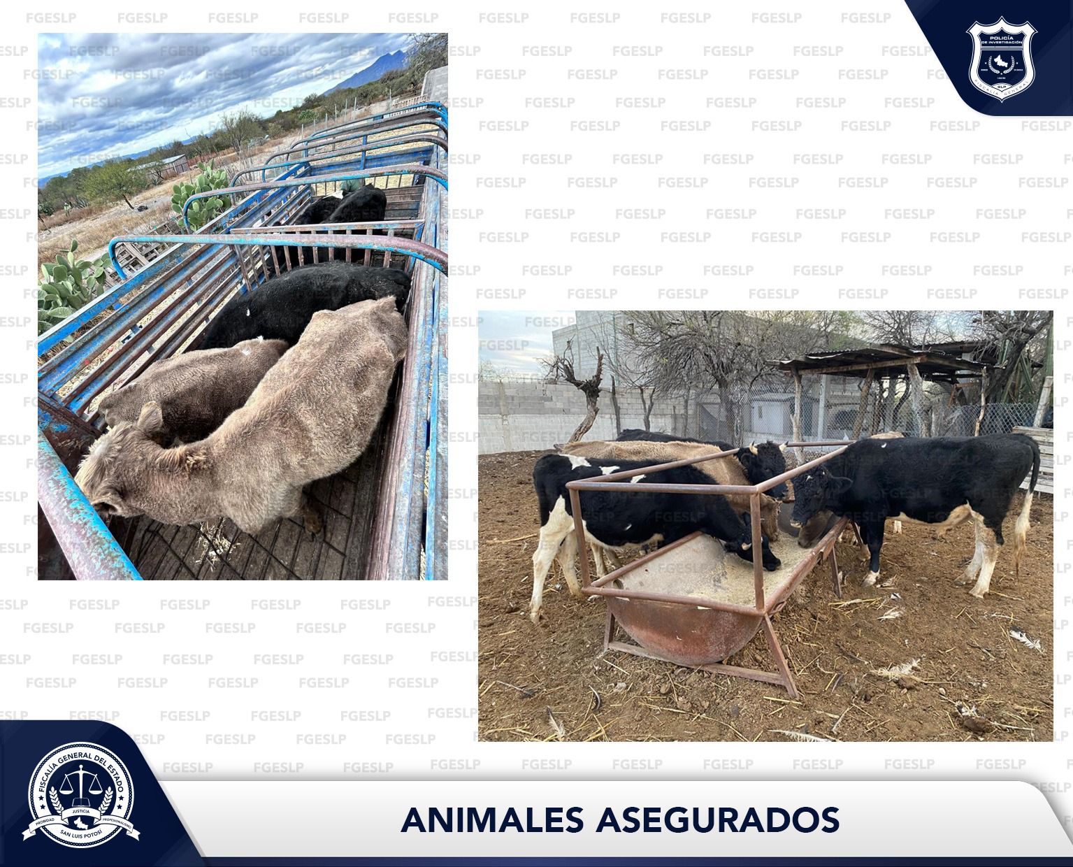 Tras estas acciones, las cinco reses fueron localizadas y aseguradas, quedando bajo resguardo de la Fiscalía General del Estado de San Luis Potosí, mientras continúan las investigaciones para dar con los responsables del robo.