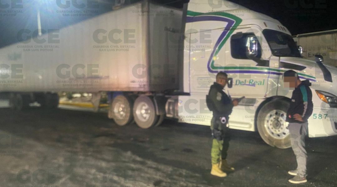 Al momento de inspeccionar la unidad, también se auxilió al conductor de la misma, luego de que fuera localizado en la cabina del vehículo de carga. El afectado indicó que el hurto fue en la comunidad Ranchería de Guadalupe, en el municipio de Mexquitic de Carmona.