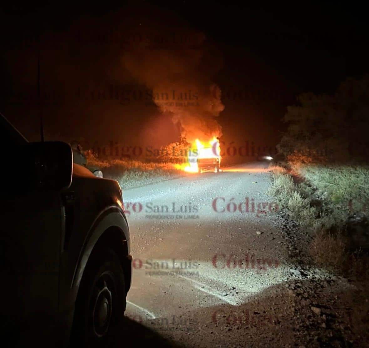 Reportan balacera en Vanegas; queman patrulla de la Guardia Civil