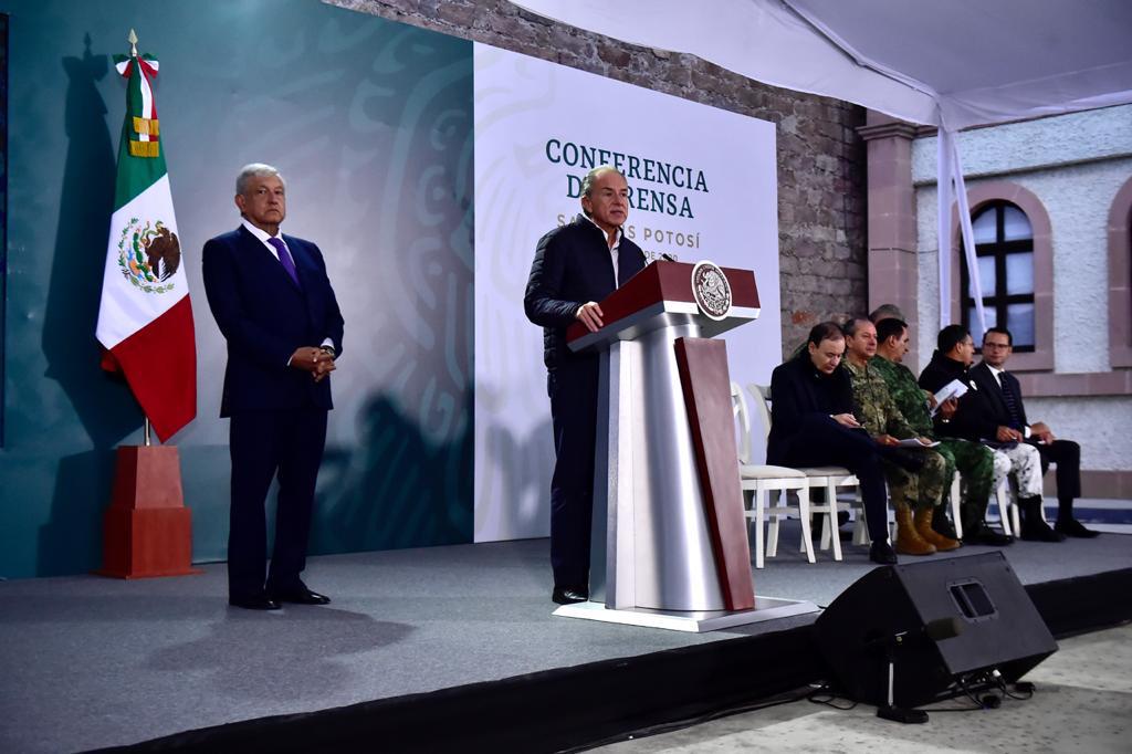 En el marco de la conferencia de prensa matutina que se realizó en la XII Zona Militar con motivo de la visita de Andrés Manuel López Obrador a la entidad potosina, el jefe del Ejecutivo federal dijo que se cuenta con todo el apoyo de su gobierno para sacar adelante proyectos y estrategias que impactan en el desarrollo del estado y el beneficio de sus habitantes, además, agradeció al Gobernador del Estado, Juan Manuel Carreras López, por poner en agenda estos temas y buscar la conjunción de esfuerzos para lograr más y mejores resultados.