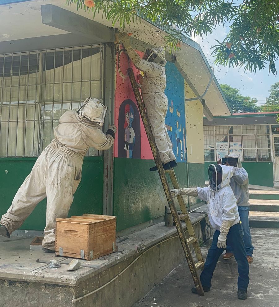 [GALERÍA] Retiran enjambre de abejas de escuela primaria en Valles