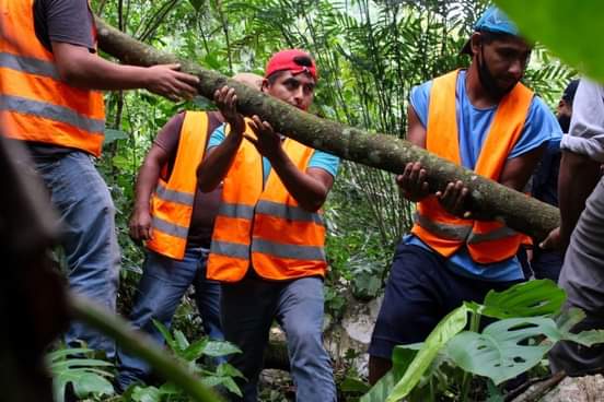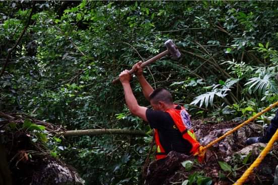 Elementos de diversas corporaciones, así como voluntarios lograron derrumbar una inmensa roca que ponía en riesgo a familias indígenas de Tamazunchale.