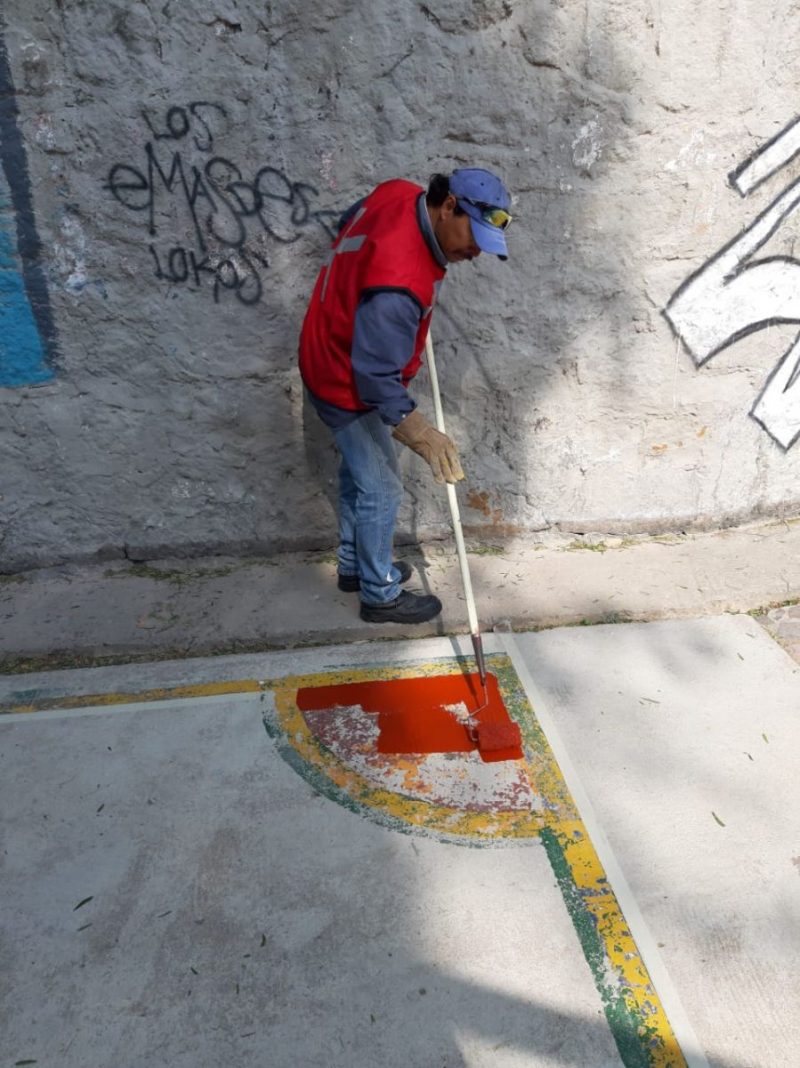 En el tramo que abarca de Los Arquitos a Salvador Nava, se realizaron labores de pintura, tanto de las canchas de futbol, como de basquetbol que están ubicadas en la zona, así como de las bancas, escalones y copetes de barda.