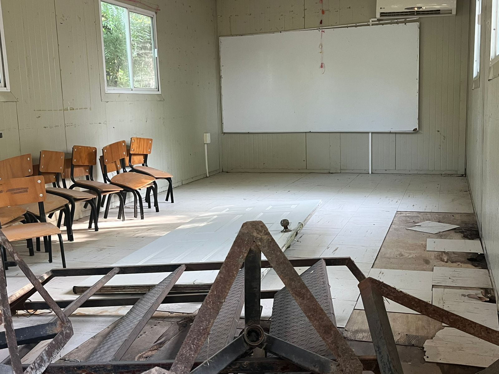 La Secretaría de Educación “cumplió” enviando un aula móvil destartalada, sin piso en buen estado, sin aire funcionando y con puerta inservible; el Ayuntamiento tendrá que arreglarla
