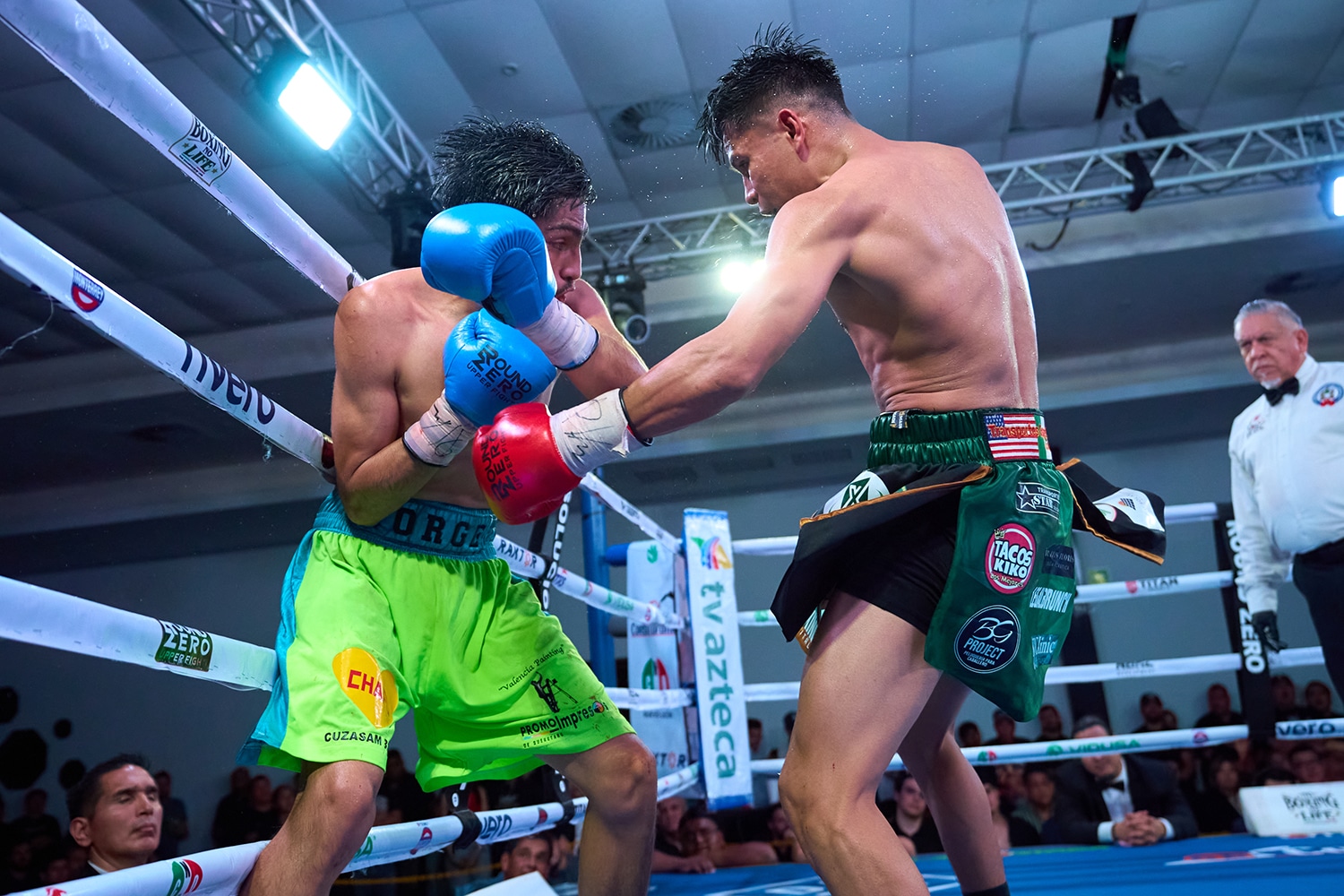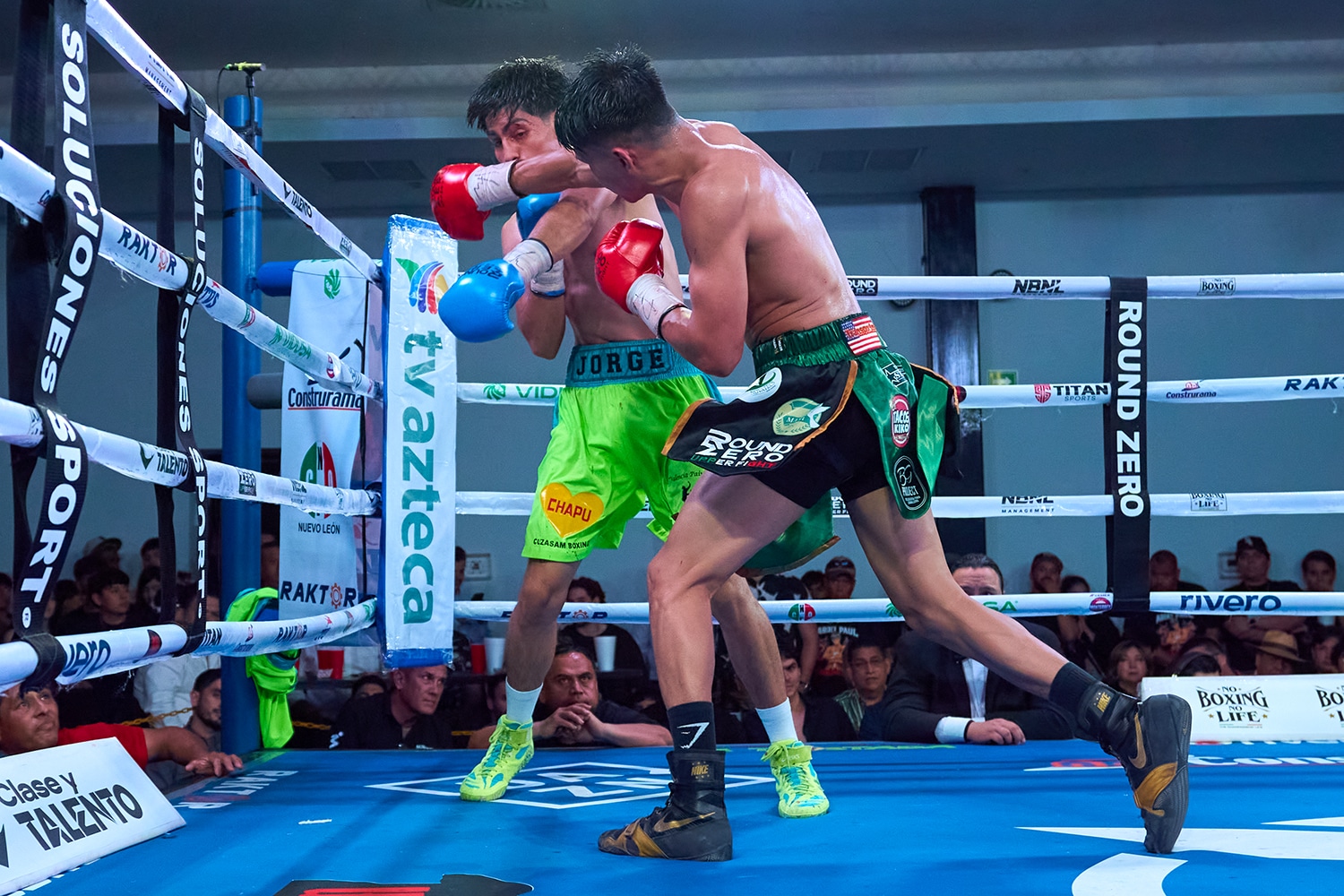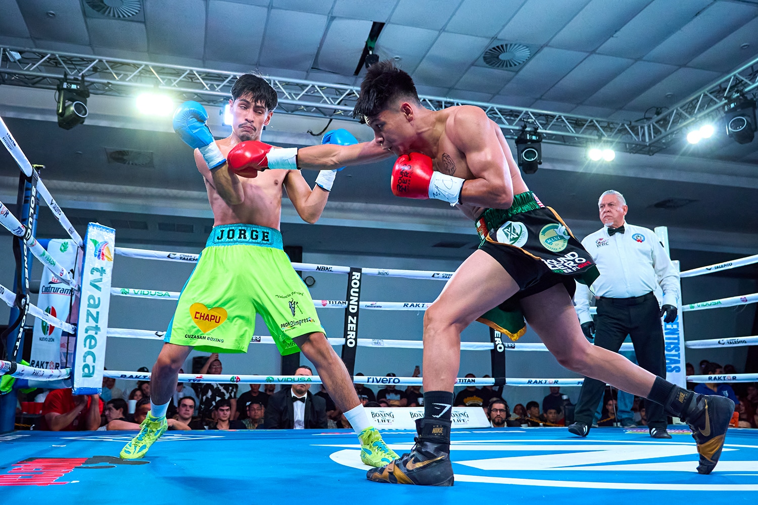 En el segundo asalto, Abdel Paúl, quien vistió pantaloncillo en color verde con vivos en negro, arrinconó en las cuerdas a Jorge Luis, quien se defendió con rectos de ambas guardias para buscar salir del acoso recibido.