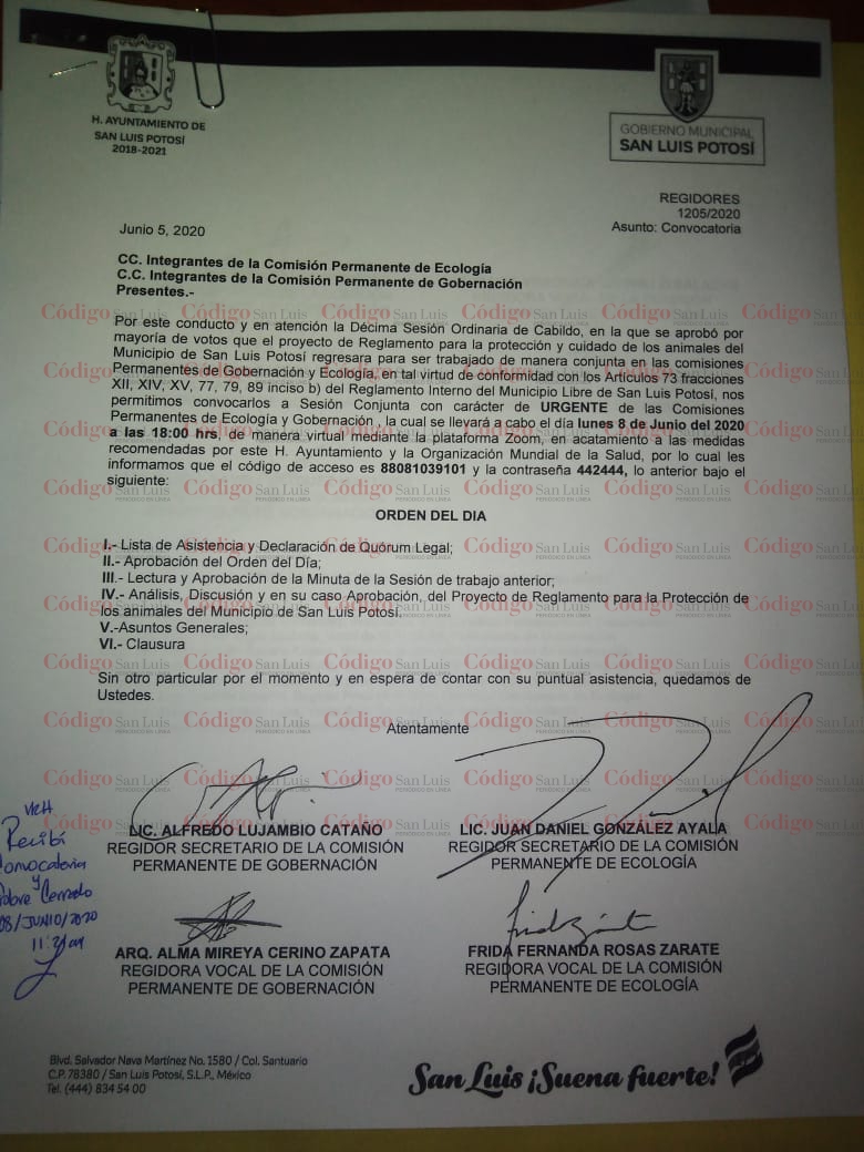 De manera urgente y silenciosa, los regidores integrantes de la Comisión Permanente de Ecología llamaron a una reunión en la que se habría de «analizar» el Proyecto del Reglamento para la Protección de los Animales del Municipio de San Luis Potosí, sin embargo, diversas fuentes aseguran que la intención es aprobar un documento a conveniencia del Ayuntamiento, que no represente responsabilidades y que, incluso, podría violar los derechos de estos seres vivos.