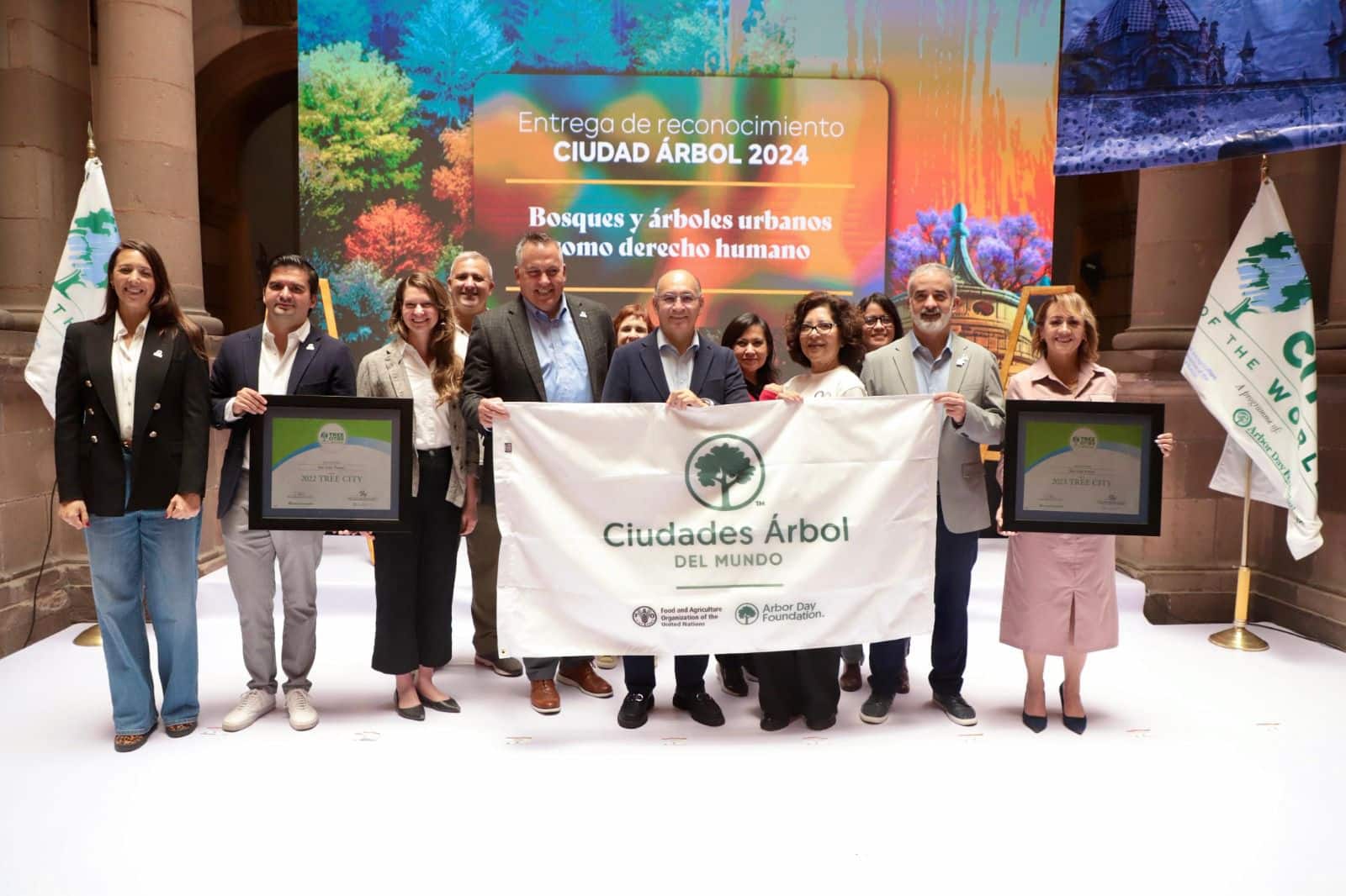 Durante la conferencia, Sophie Plitt, gerente del programa Tree Cities of the World de la Arbor Day Foundation, presentó la primera bandera del programa en idioma español, entregada al municipio de San Luis Potosí, y destacó que el principal objetivo de esta red internacional es “crear conciencia sobre la importancia del arbolado urbano en la calidad de vida”. Elena Graig, especialista argentina en arbolado, resaltó la biodiversidad local, especialmente la yucca potosina, una especie única en el mundo. Por su parte, Ernesto Herrera, Director General de Reforestamos México, reconoció el liderazgo del Alcalde Enrique Galindo por colocar este tema en el centro del debate público a nivel nacional e internacional, desde nuestra ciudad.
