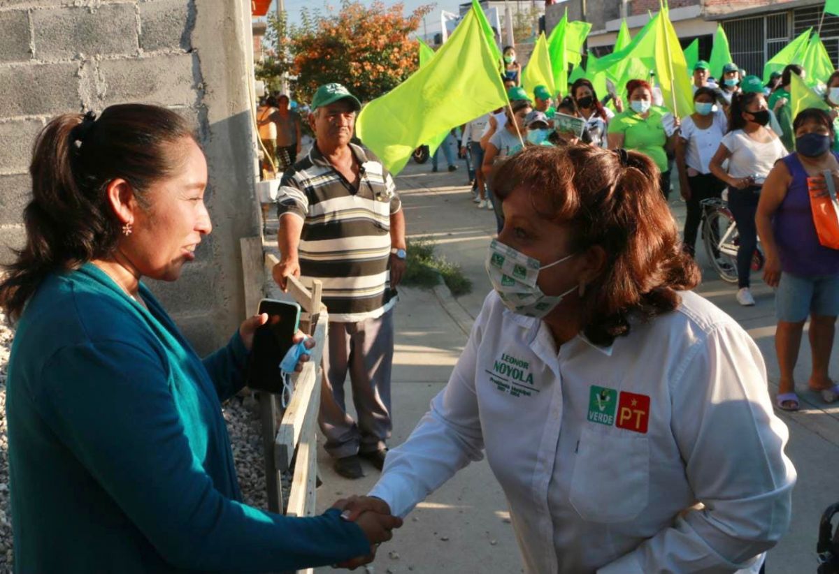Ante la impresionante marea verde que se convirtió la plaza del Manantial en la colonia Pavón, la candidata del Partido Verde Ecologista de México (PVEM) y Partido del Trabajo (PT), Leonor Noyola Cervantes, exhortó a la ciudadanía a ejercer su derecho al voto, a participar en la fiesta democrática de 6 de junio y seguir convirtiendo a Soledad en una tierra de más y mejores oportunidades de desarrollo.