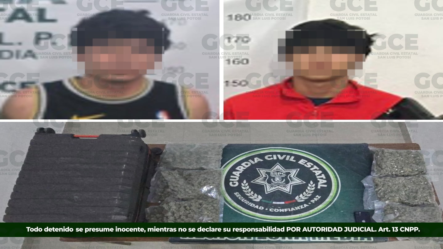 Los detenidos fueron identificados como Óscar N., de 22 años; Javier N., de 21; así como dos menores de edad de 17 y 16 años. Al momento de su detención, los sujetos transportaban más de tres kilogramos de marihuana ocultos dentro de una maleta.