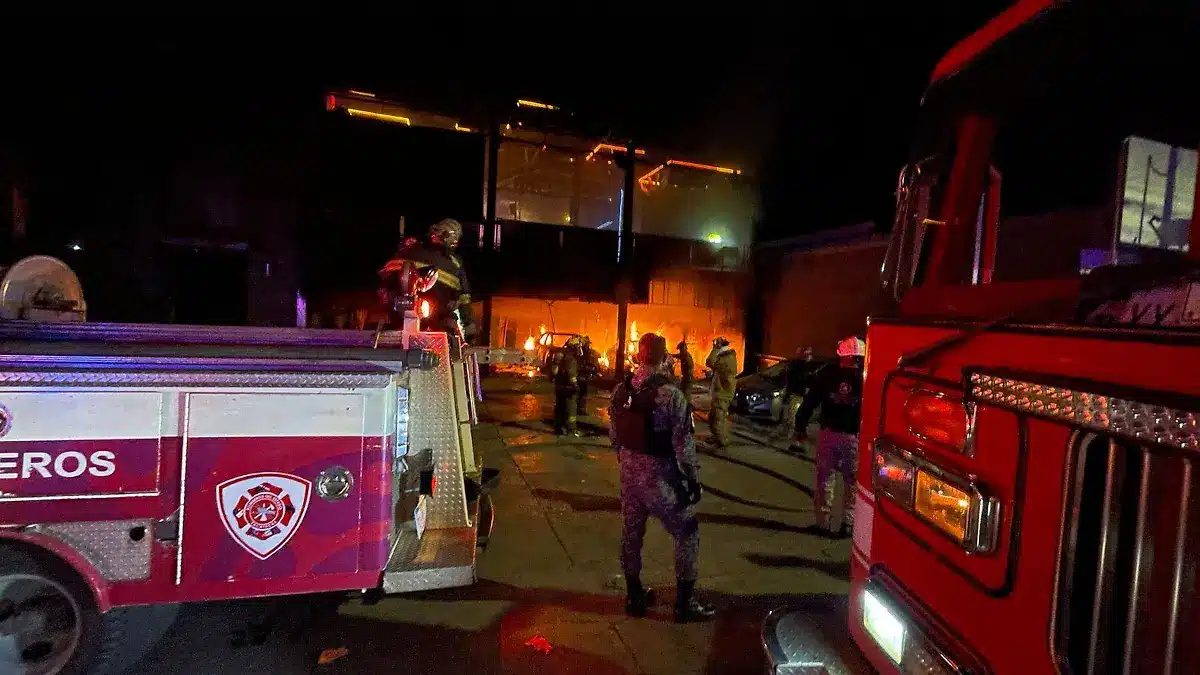 Según Protección Civil municipal, el fuego fue controlado tras una rápida intervención de los cuerpos de emergencia. El siniestro dejó como saldo al menos dos vehículos calcinados y daños en el inmueble.