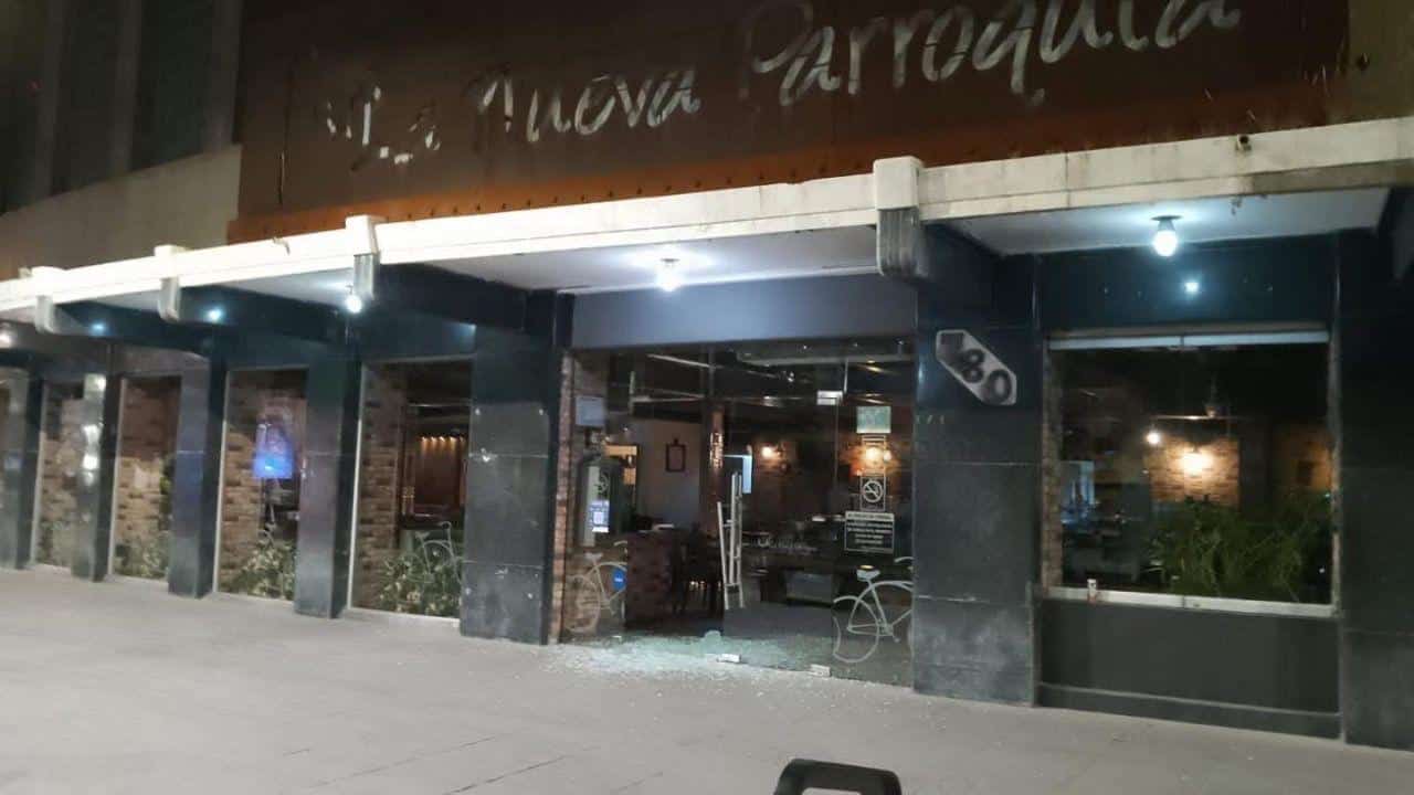 Durante la madrugada de este domingo, sujetos desconocidos causaron daños en la puerta principal del restaurante “La Nueva Parroquia”, localizado sobre la avenida Venustiano Carranza, en el Centro Histórico de la capital potosina.