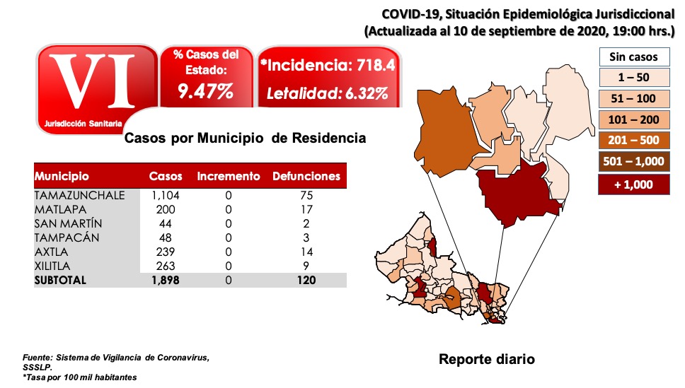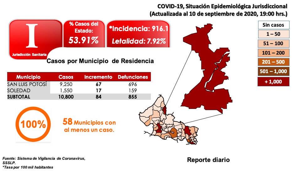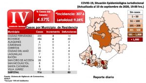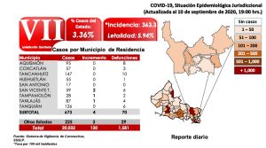 Desde el inicio de la pandemia la entidad confirma 20 mil 032 casos positivos y 1,581 defunciones. La tasa de letalidad se encuentra en 7.89% por cada 100 infectados.