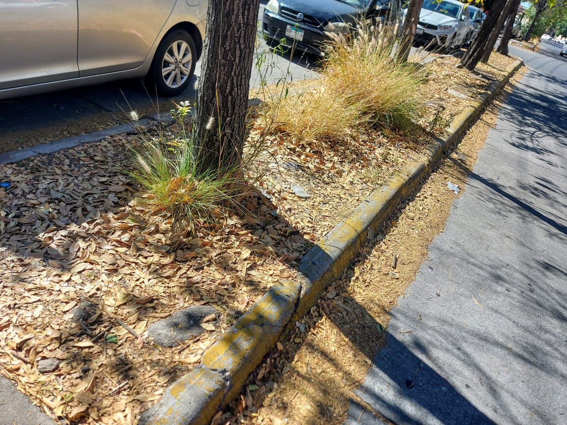 Los camellones de dicha arteria están desatendidos, con hierba crecida, grandes ramas que entorpecen el paso de peatones y hoyancos que son un riesgo para quienes transitan por la zona.