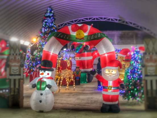 Cascanueces dan la bienvenida al Kiosko de la Plaza, arcos de colores blanco y rojo con monos de nieve y Santa Claus rodean un carrusel, que serenamente espera la llegada de los pequeños que suban y aporten alegría con una sonrisa.