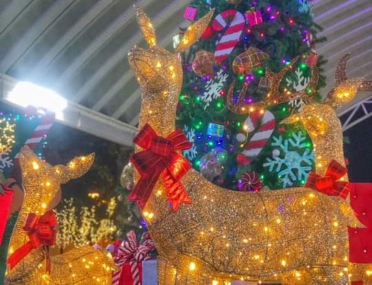 Noche a noche, el árbol de Navidad, ilumina con enorme poder de atracción para los paseantes, luces colgantes dejan caer el brillo intenso de una multitud de focos, grandes renos con brillo dorado obligan a voltear la mirada hacia ellos.
