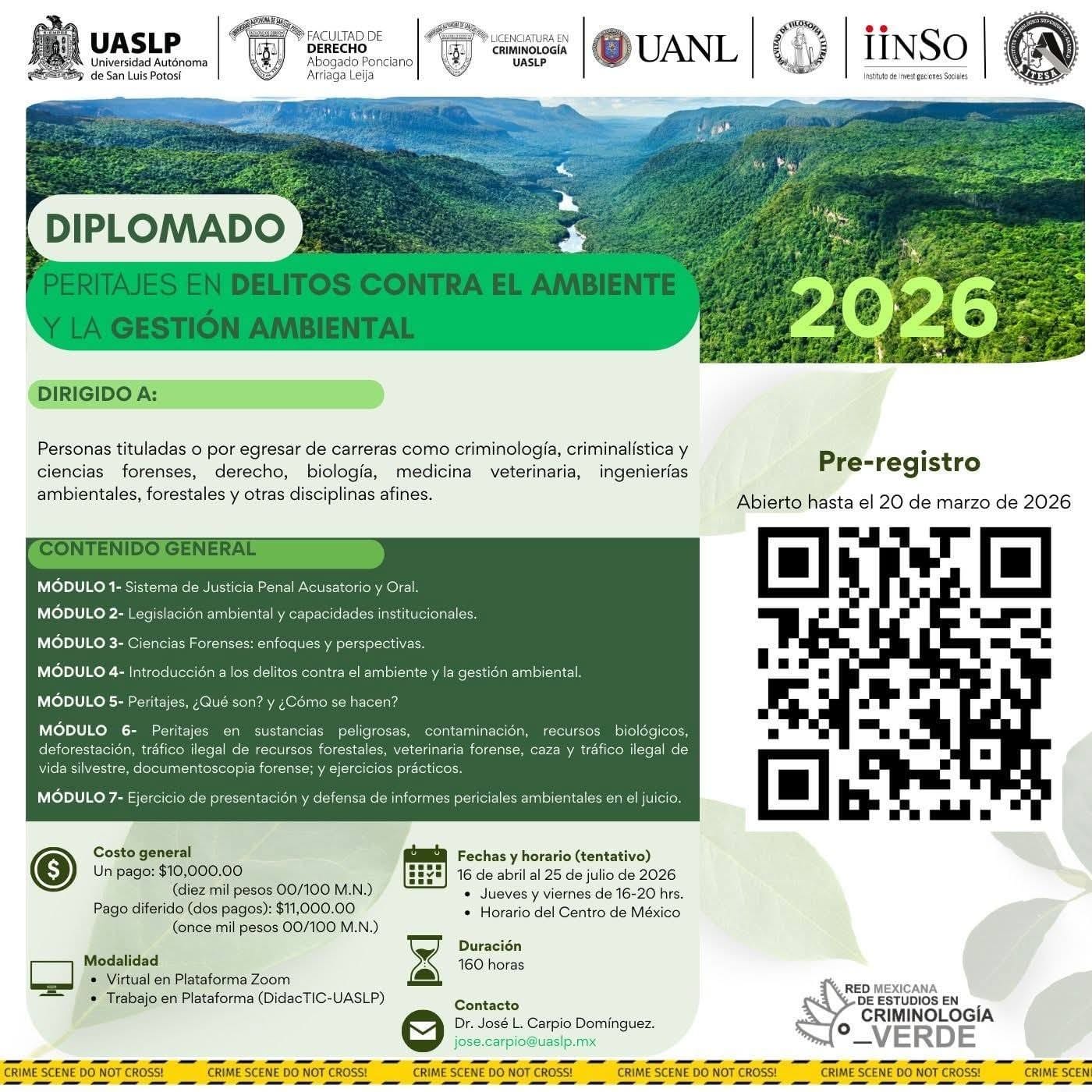 La Facultad de Derecho Abogado Ponciano Arriaga Leija de la Universidad Autónoma de San Luis Potosí (UASLP) lanzó la invitación a la segunda edición del diplomado “Peritajes en delitos contra el ambiente y la gestión ambiental”, una propuesta académica que busca atender la creciente necesidad de especialización en materia de justicia ambiental, tanto en el ámbito público como en el privado.