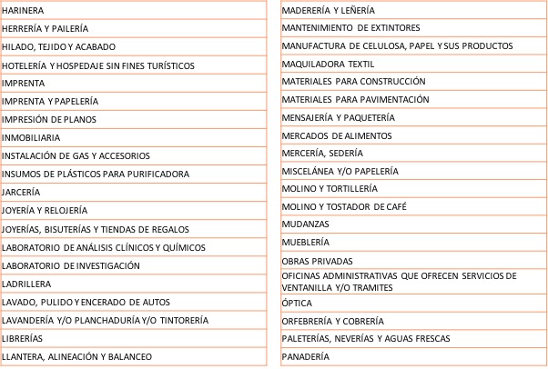 Las siguientes actividades son todas las que se podrán realizar a partir del lunes 1 de junio, siempre y cuando cumplan con los protocolos aprobados por el Instituto Mexicano del Seguro Social y la Comisión Estatal de Protección Contra Riesgos Sanitarios (Coepris), los cuales deben ser verificados por el ayuntamiento.