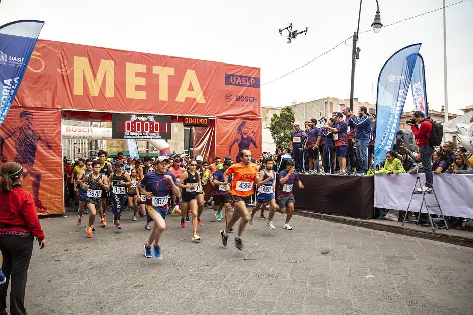 La salida se realizó puntual a las 8 de la mañana por parte del rector de la UASLP Manuel Fermín Villar Rubio, el secretario general doctor Anuar Abraham Kasis Ariceaga, el jefe de la División de Servicios Estudiantiles maestro Francisco Asís Lozano López y directores de Facultades quienes desde un tapanco a un costado de la meta, sonaron la chicharra para cada uno de las distancias atléticas.