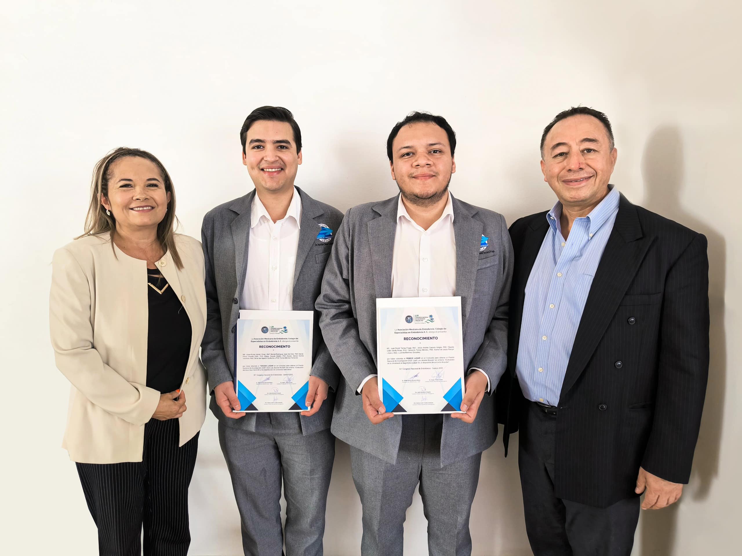 José David Torres Fraga y Adrián Omar López Rubio, estudiantes de la Maestría en Endodoncia que imparte la Facultad de Estomatología de la Universidad Autónoma de San Luis Potosí (UASLP), obtuvieron el primer y tercer lugar, respectivamente, en la edición LIII del Congreso Nacional de Endodoncia, organizado por la Asociación Mexicana de Endodoncia (AMECEE) 2025.