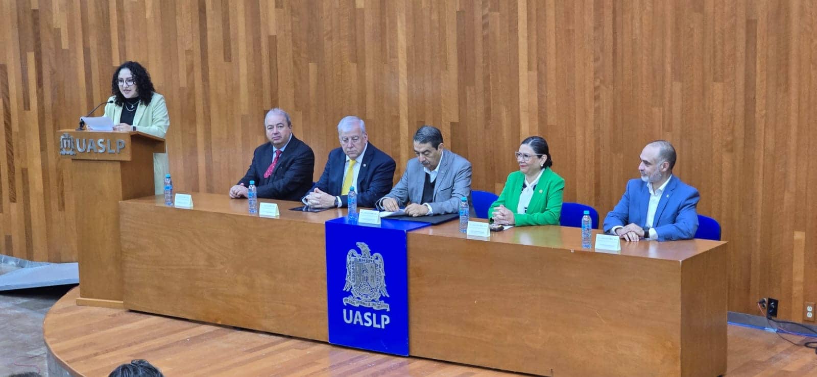 El evento fue encabezado por el rector de la UASLP, doctor Alejandro Javier Zermeño Guerra; el maestro en Derecho Federico Arturo Garza Herrera, secretario general de la Universidad; el C.P.C. y M.I. Juan Antonio Zapata Zapata, director de la Facultad de Contaduría y Administración; la maestra Laura Ofelia Robles Sahagún, coordinadora nacional de Universidad Empresa de ANFECA; y el maestro en Ciencias y maestro en Administración Gylmar Mariel Cárdenas, secretario de Vinculación de la UASLP.