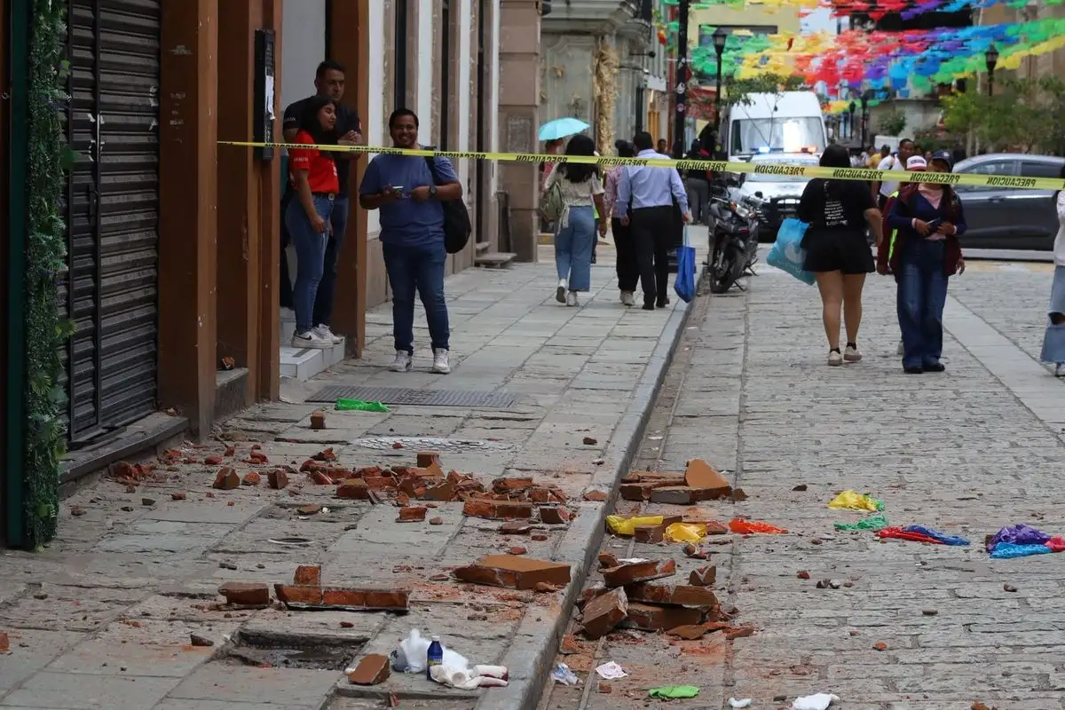 En la ciudad de Oaxaca, un menor de edad resultó herido tras el derrumbe de una fachada en el andador turístico Macedonia Alcalá. Fue trasladado por la Cruz Roja a un hospital y se reporta estable.