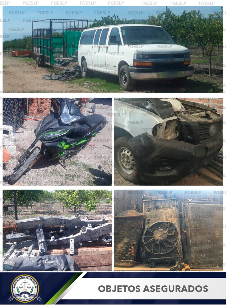 Ciudad Fernández, S. L. P. – Vehículos y autopartes robadas fueron encontrados dentro de un inmueble que se cateo por parte de la Policía de Investigación en Ciudad Fernández, logrando el aseguramiento de dos vehículos, un remolque, un tracto camión, una motocicleta y autopartes con reporte de robo.