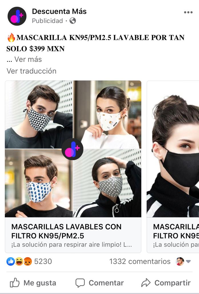 En grupos de Facebook y por mensajes de WhatsApp circulan toda clase de ofertan donde se destacan los beneficios de usar cubrebocas y se advierte sobre la necesidad de utilizarlos ante la pandemia que se vive por la propagación del Covid-19, sin embargo, aprovechando la psicosis y desesperación de la gente, los colocan a la venta en precios que pueden ir desde los 150 pesos hasta los 400 cada uno.