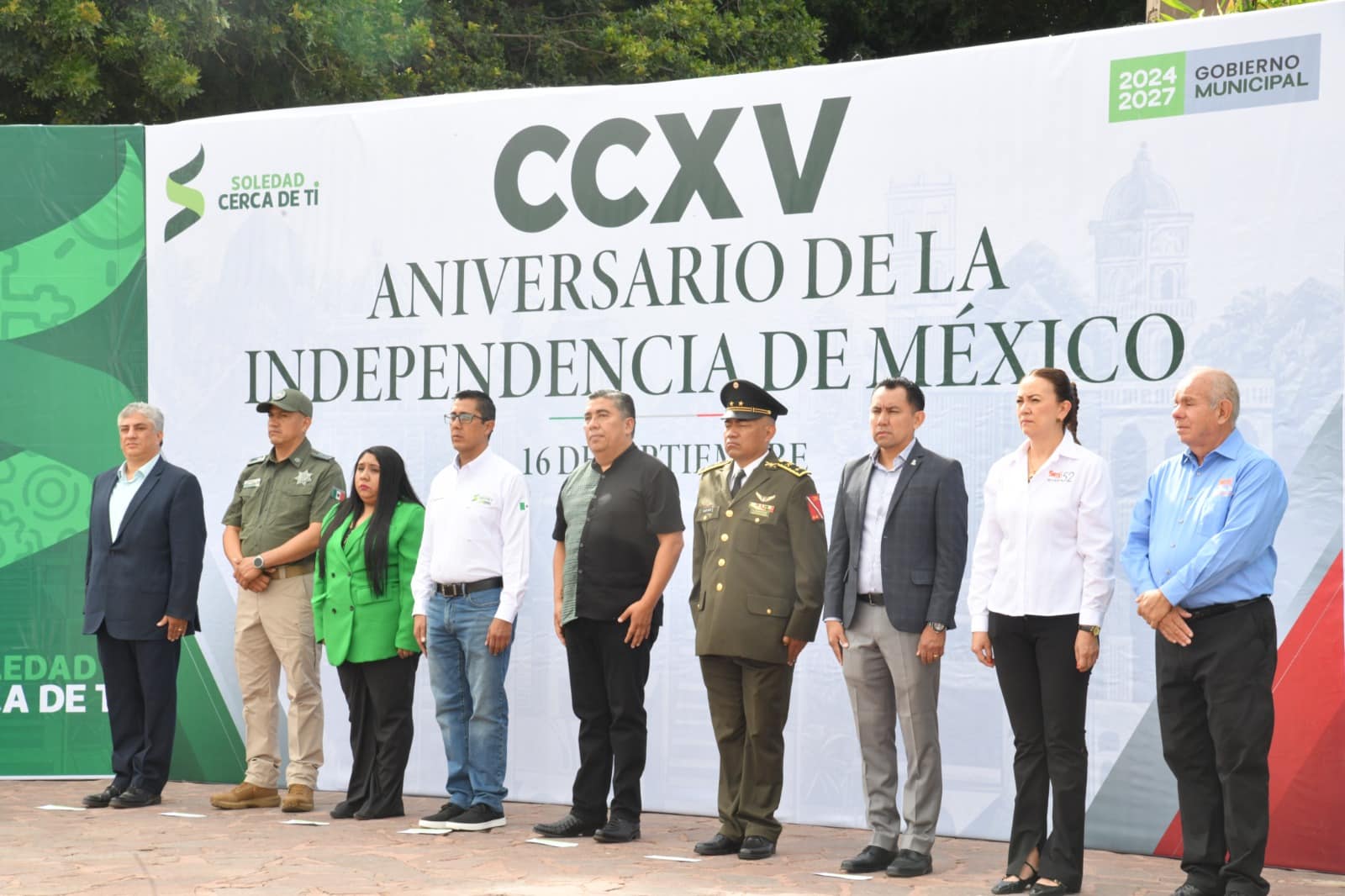 Juan Manuel Navarro Muñiz, Alcalde de Soledad de Graciano Sánchez, encabezó esta mañana el acto solemne por el CCXV aniversario de la Independencia de México, previo al inicio del tradicional Desfile cívico; en su mensaje, destacó que esta conmemoración es un recordatorio del valor y la convicción de mujeres y hombres que dieron patria y libertad, y subrayó que hoy corresponde a las y los mexicanos mantener vivo ese legado a través de la solidaridad, el compromiso social y la construcción de un mejor futuro.
